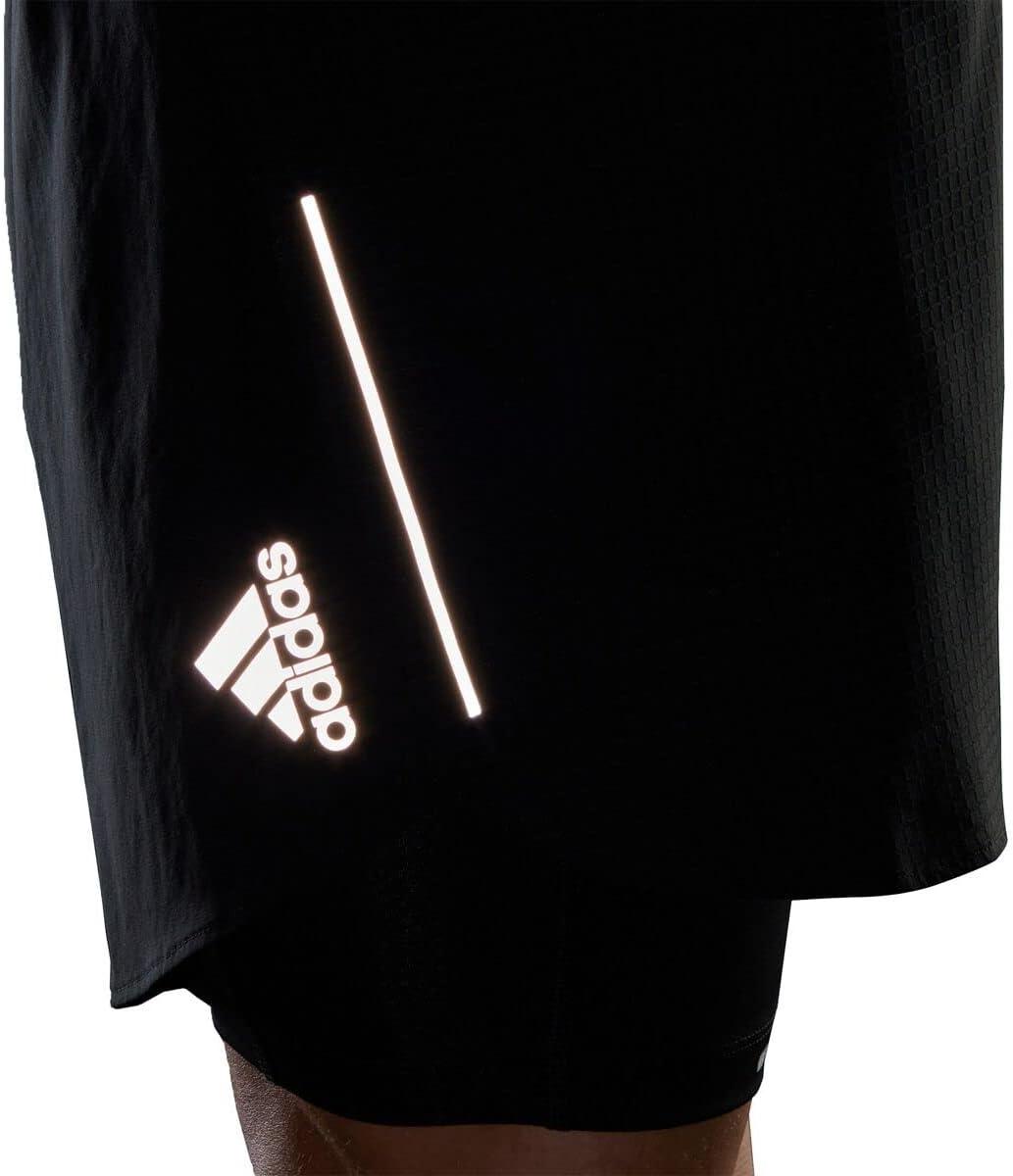 The goal is simple: Run fast. These men's adidas two-in-one shorts help you get there with a design that's lightweight, moisture-absorbing and supportive. Inner tights provide extra coverage, and a sweat-guard pocket in the back holds your keys and cards. Reflective details shine bright in low-light conditions.