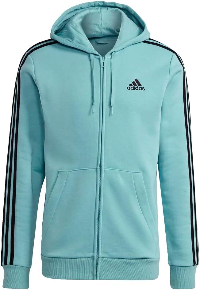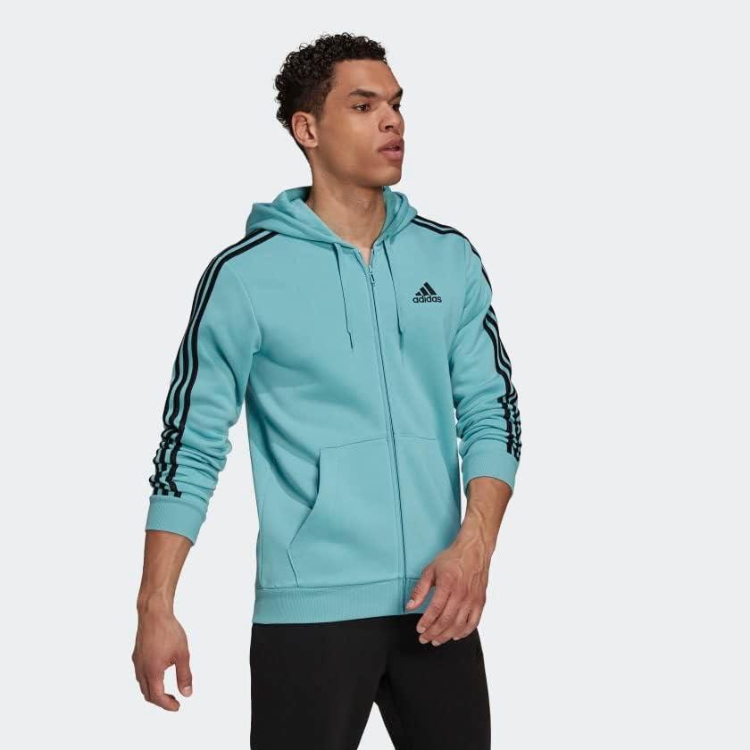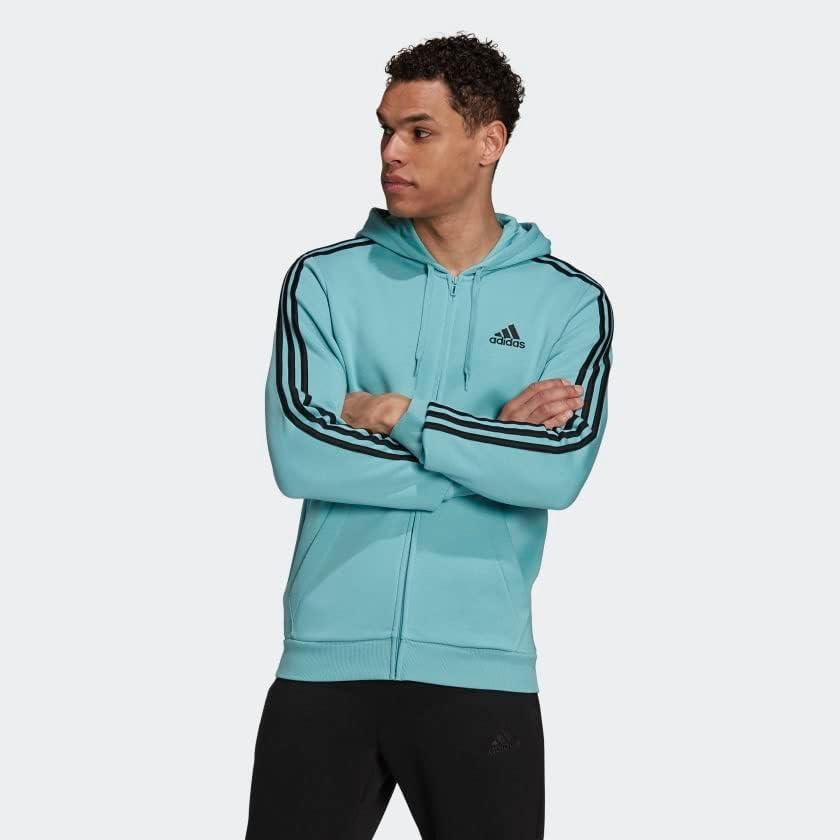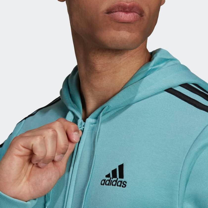 adidas mens Essentials 3-stripes Fleece Full Zip Hoodie(Mint Ton/Black)