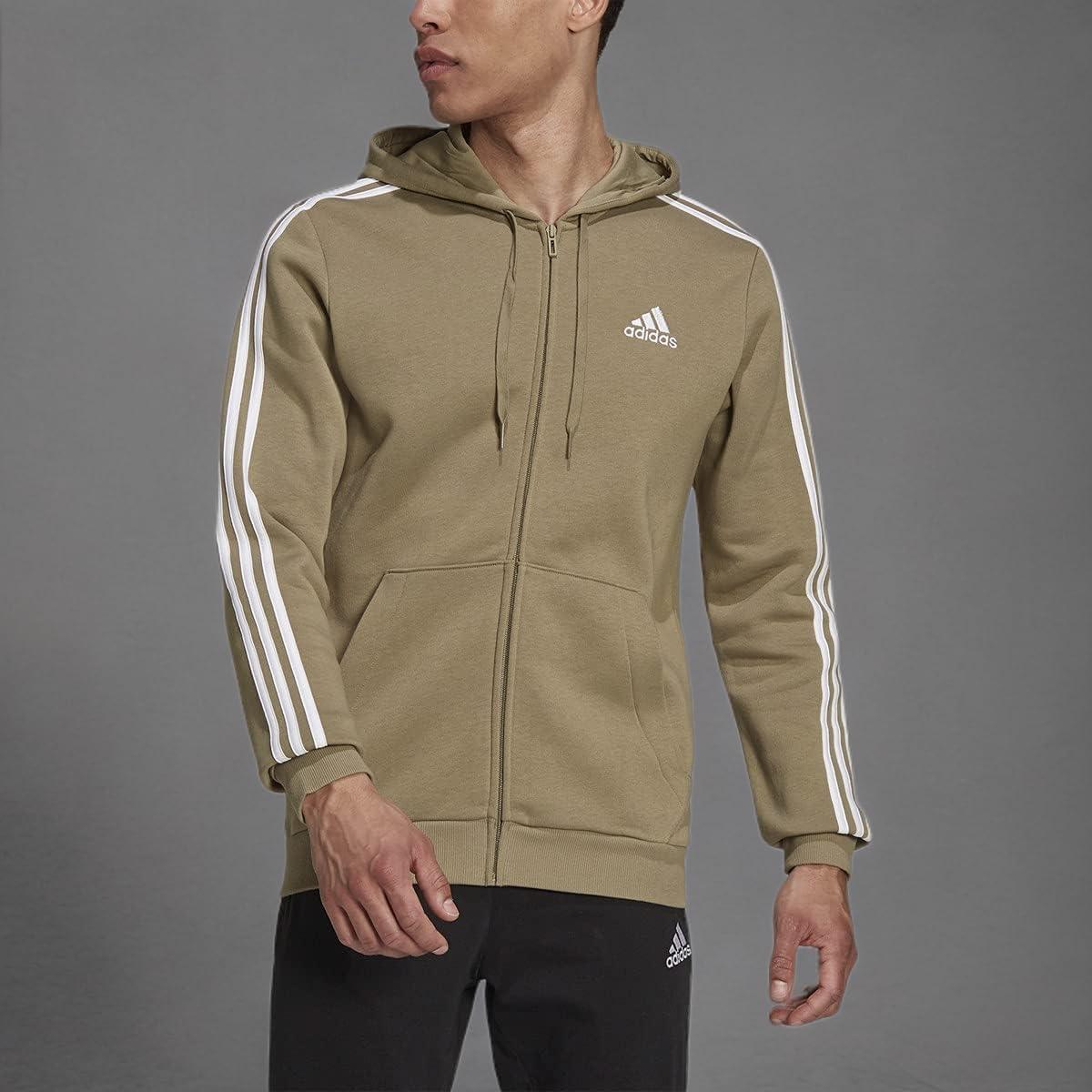 adidas mens Essentials 3-stripes Fleece Full Zip Hoodie(Orbit Green/White)