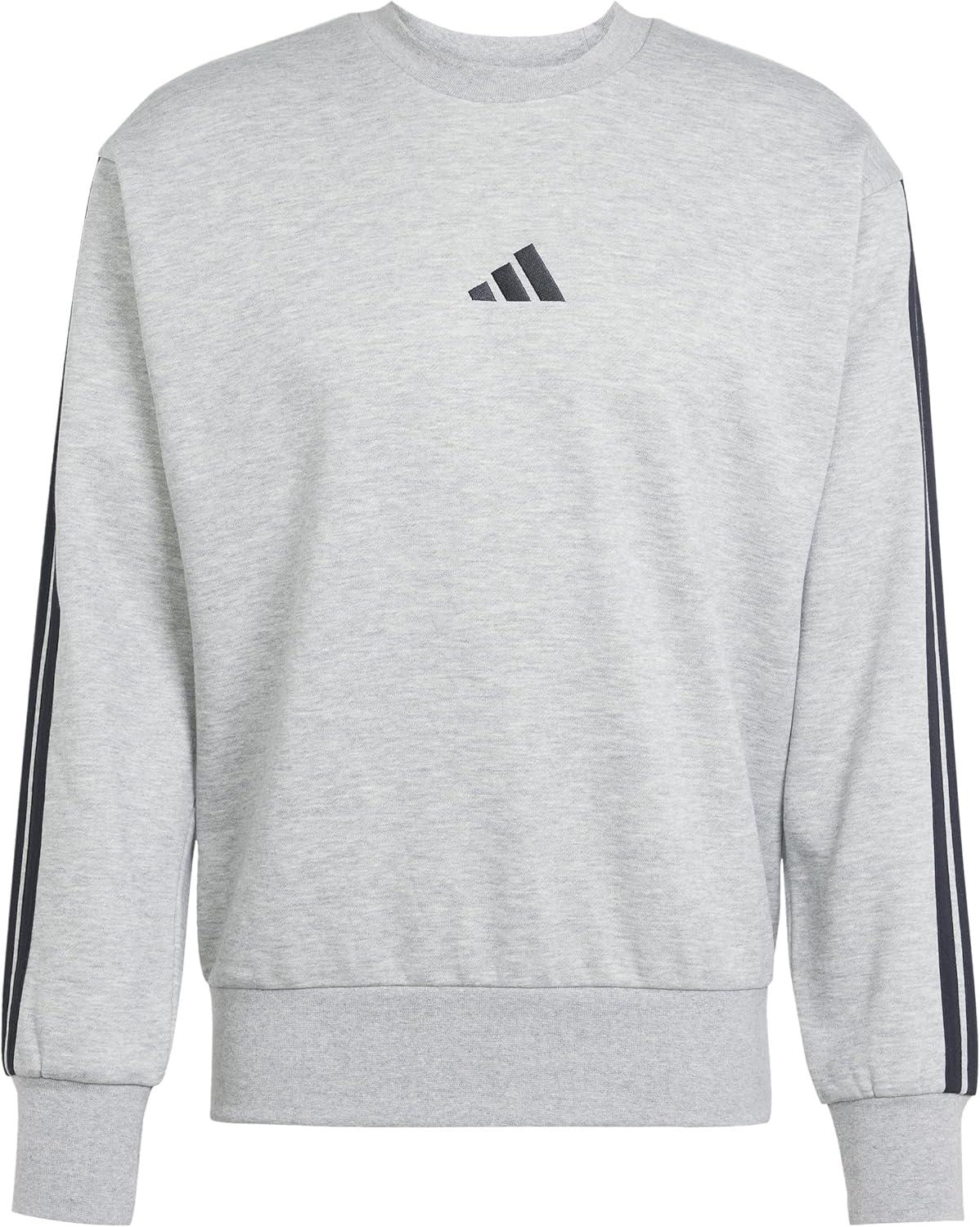 adidas Men’s Essentials 3-Stripes Fleece Sweatshirt(Medium Grey Heather)