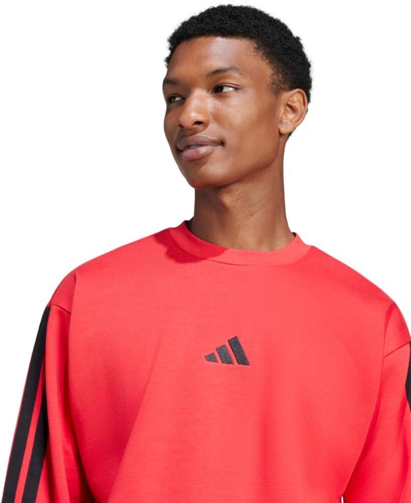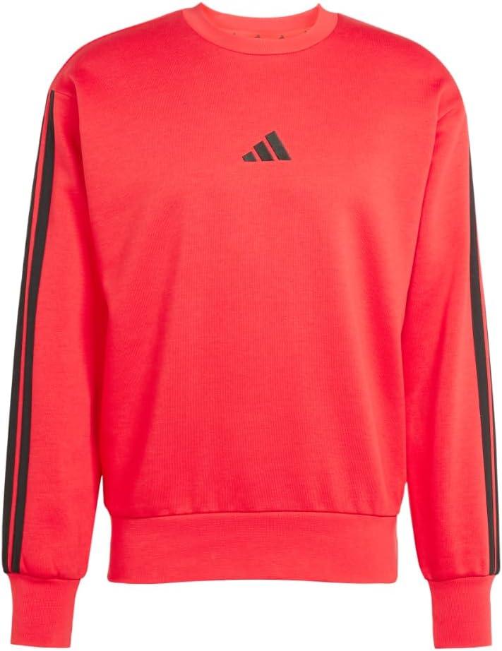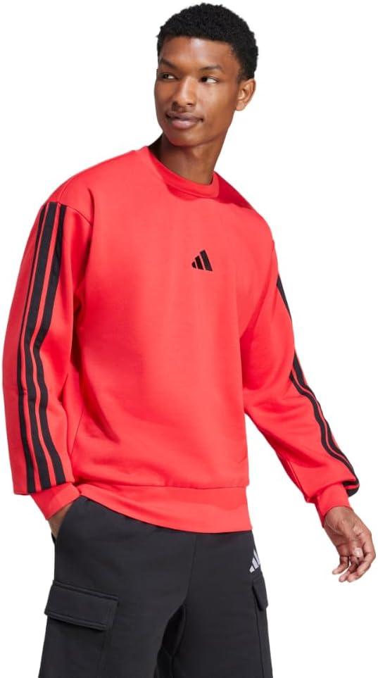 adidas Men’s Essentials 3-Stripes Fleece Sweatshirt(Pure Ruby/Black)