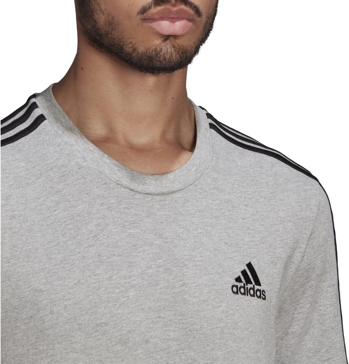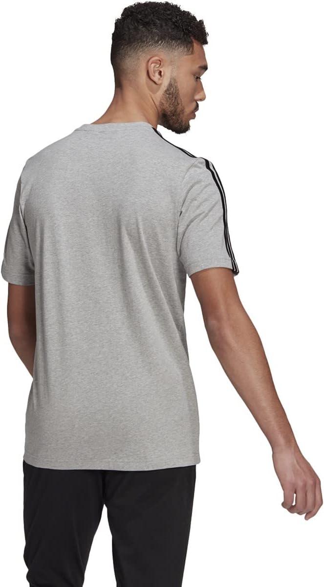 adidas Men’s Essentials 3-stripes Tee(Medium Grey Heather)