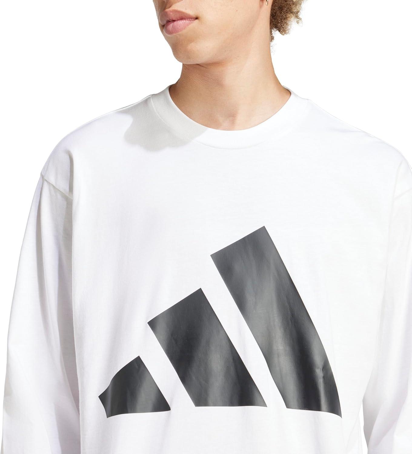 adidas Mens Essentials Big Logo Single Jersey Long Sleeve T-Shirt(White/Black)