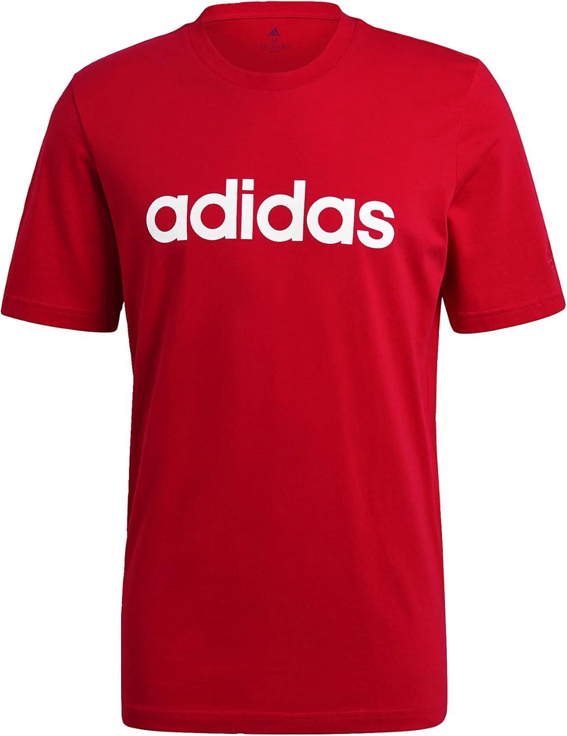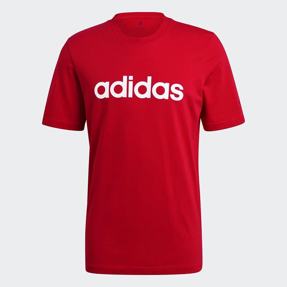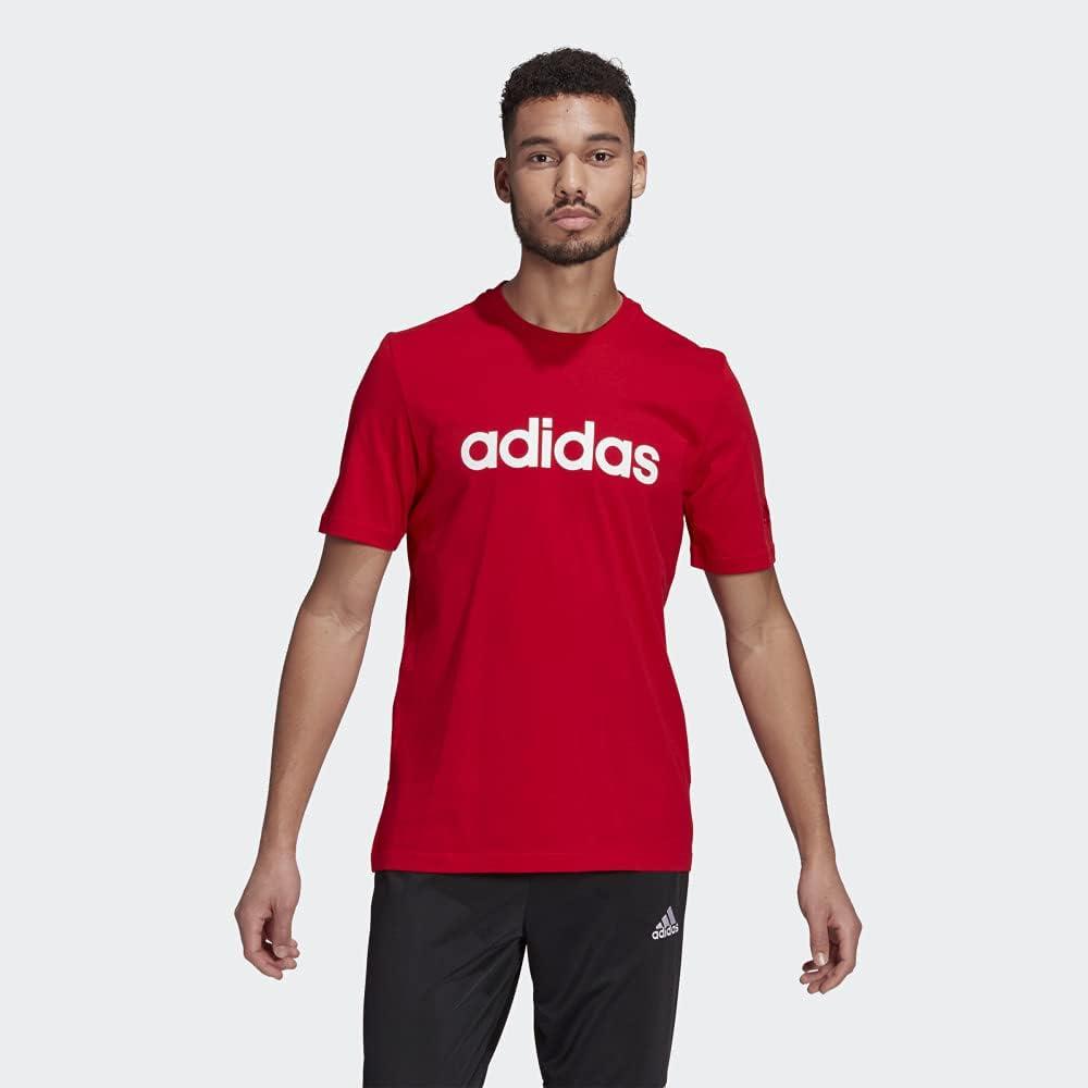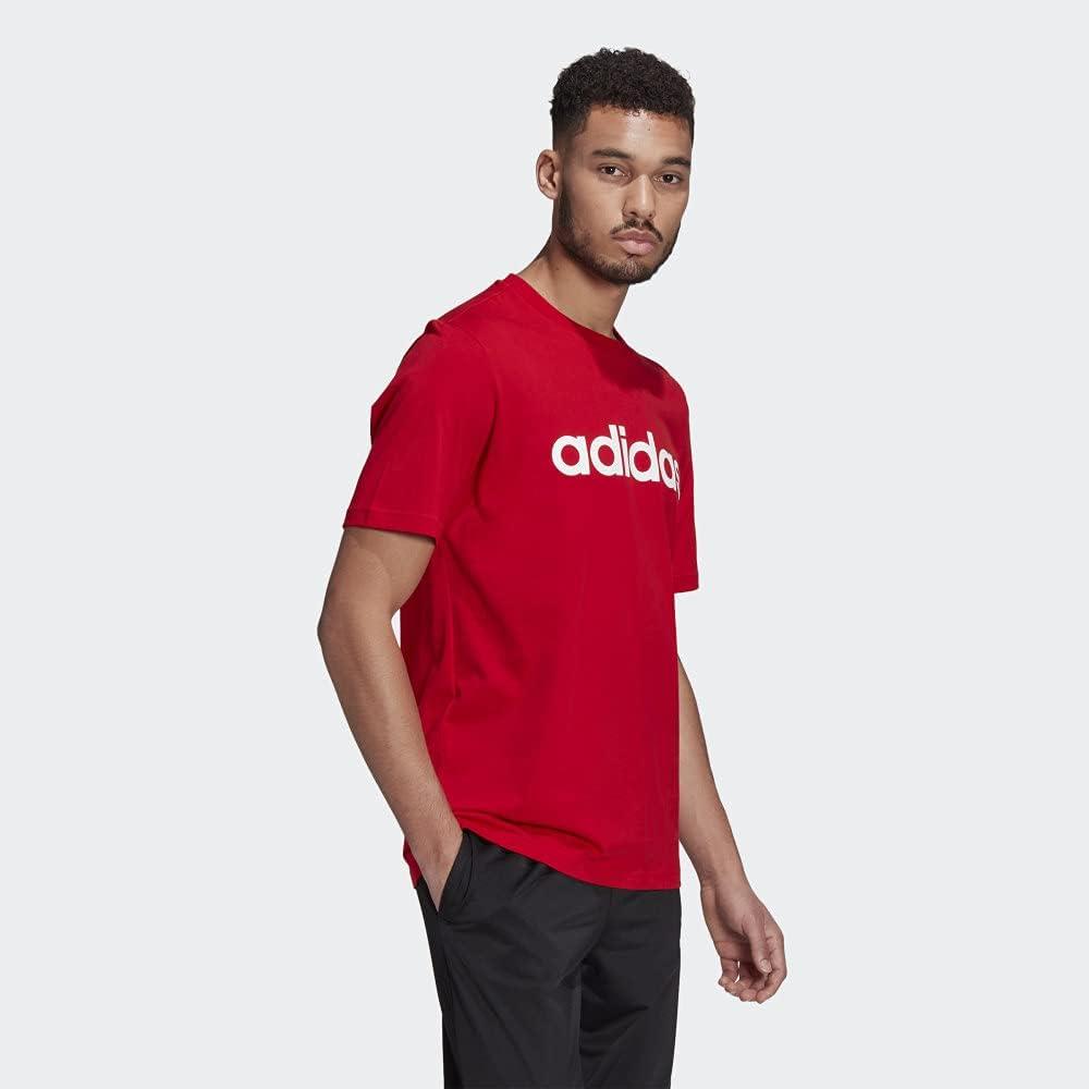 adidas Men’s Essentials Embroidered Linear Logo Tee(Scarlet)