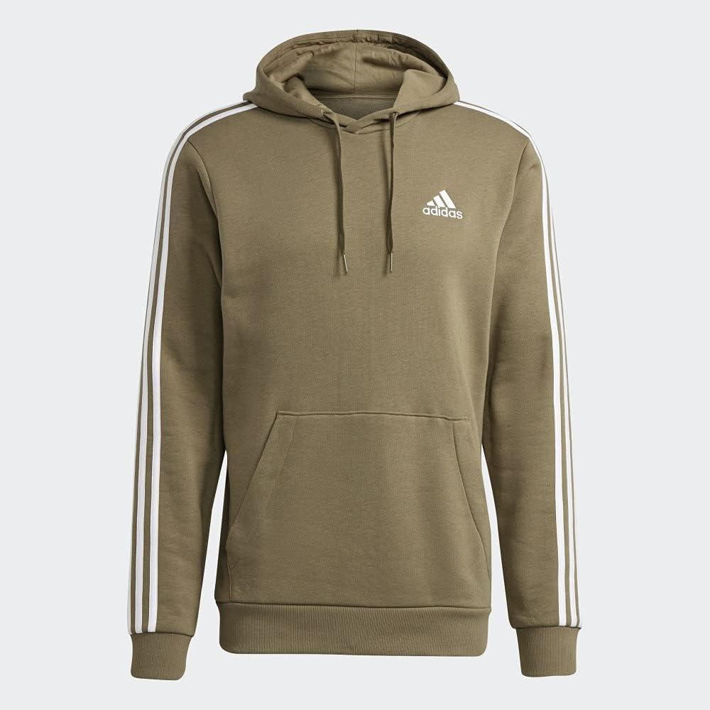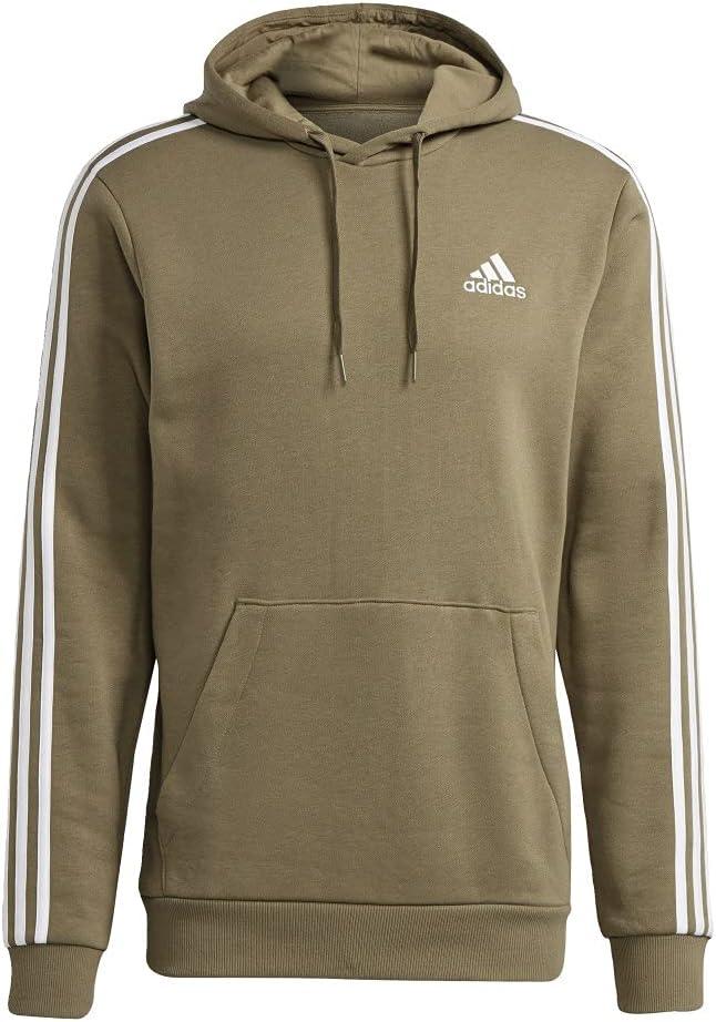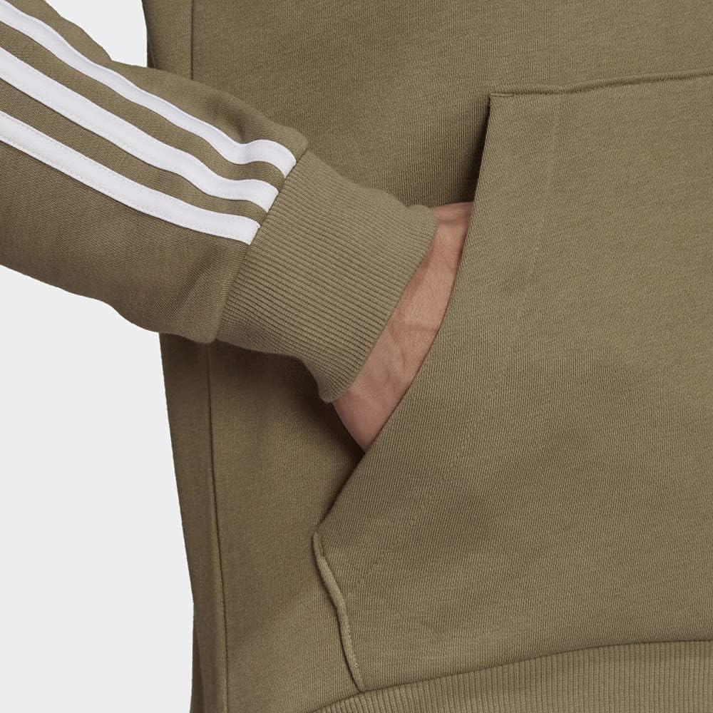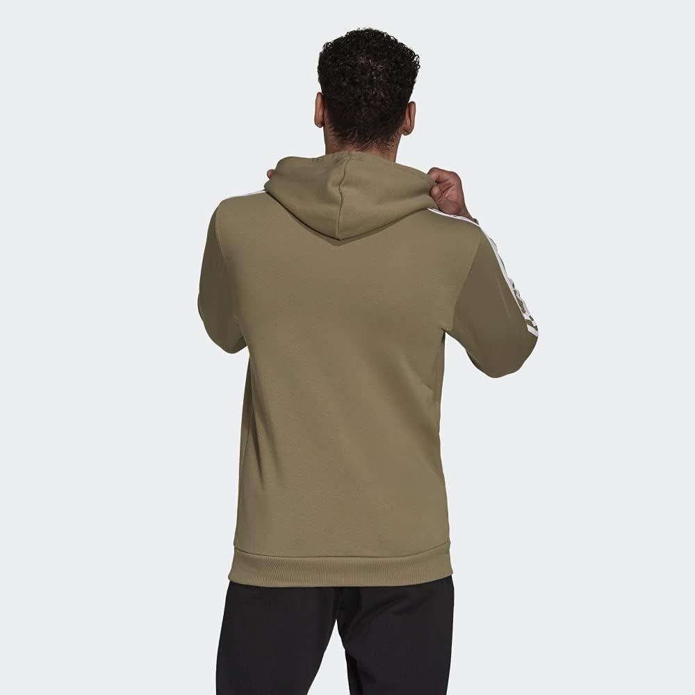 adidas mens Essentials Fleece 3-stripes Hoodie(Orbit Green/White)