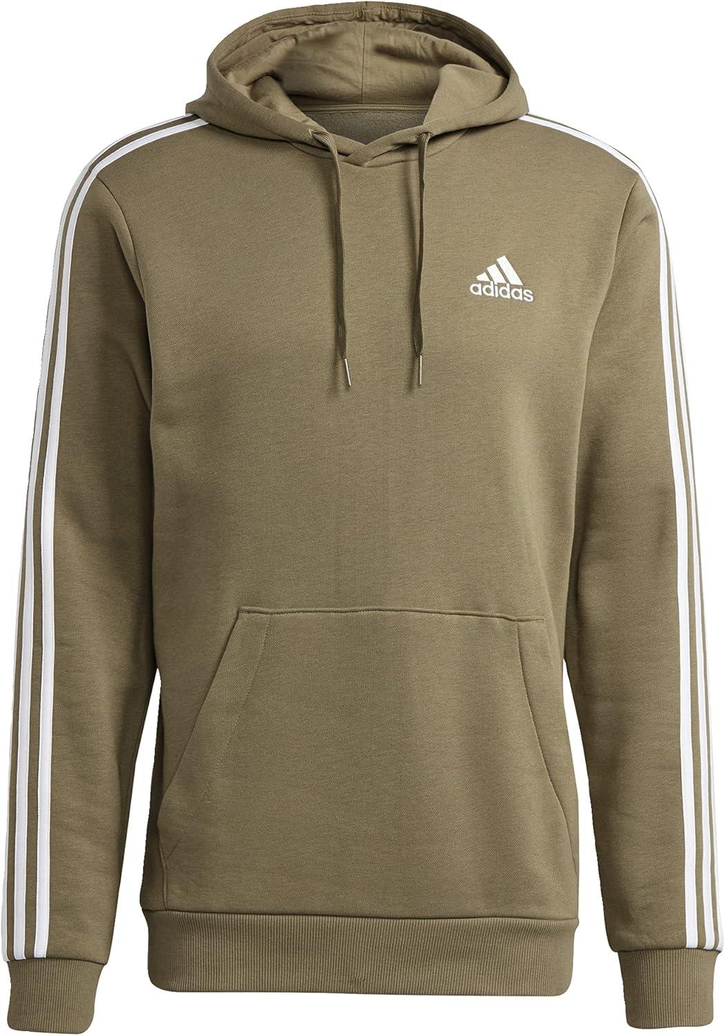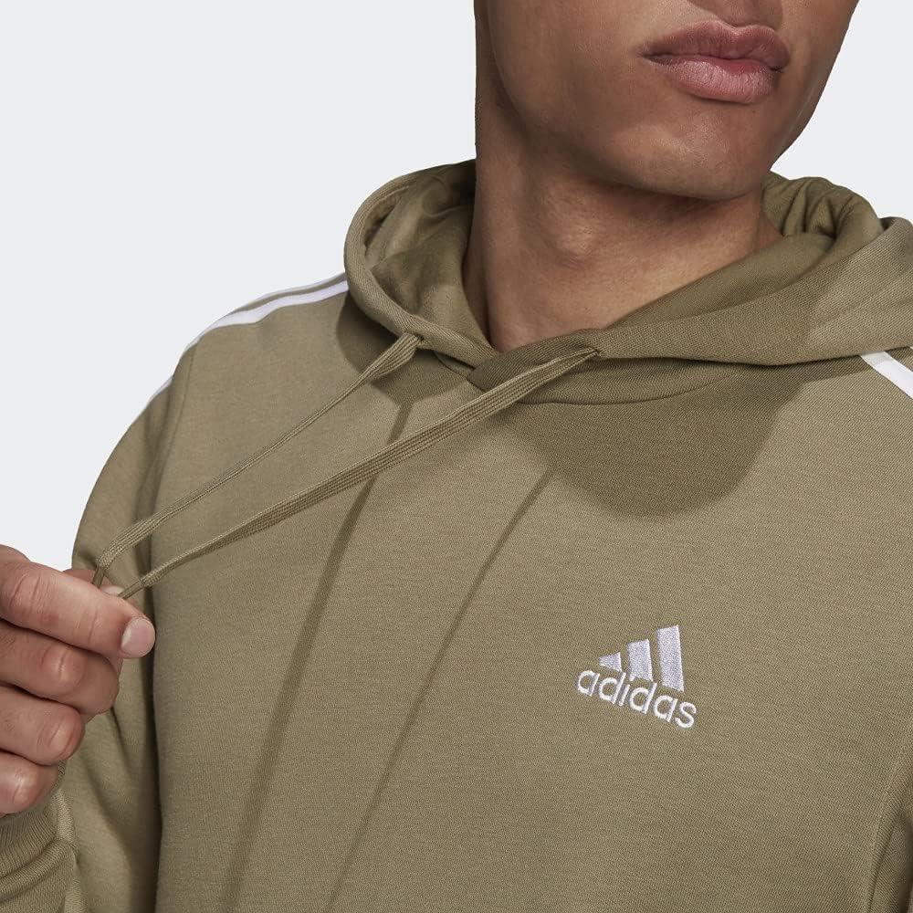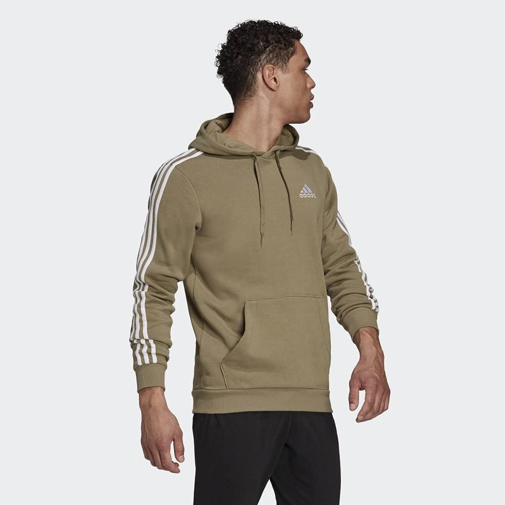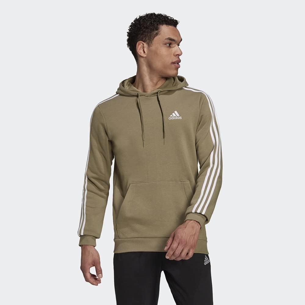 adidas mens Essentials Fleece 3-stripes Hoodie(Orbit Green/White)