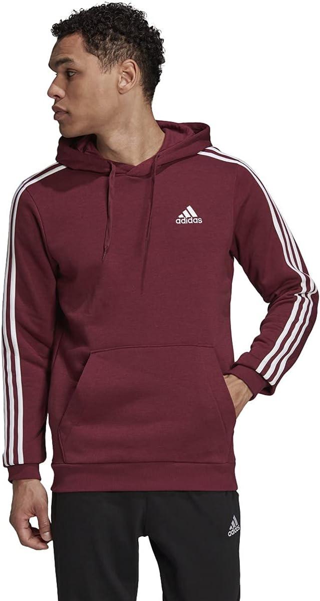 adidas mens Essentials Fleece 3-stripes Hoodie(Victory Crimson/White)