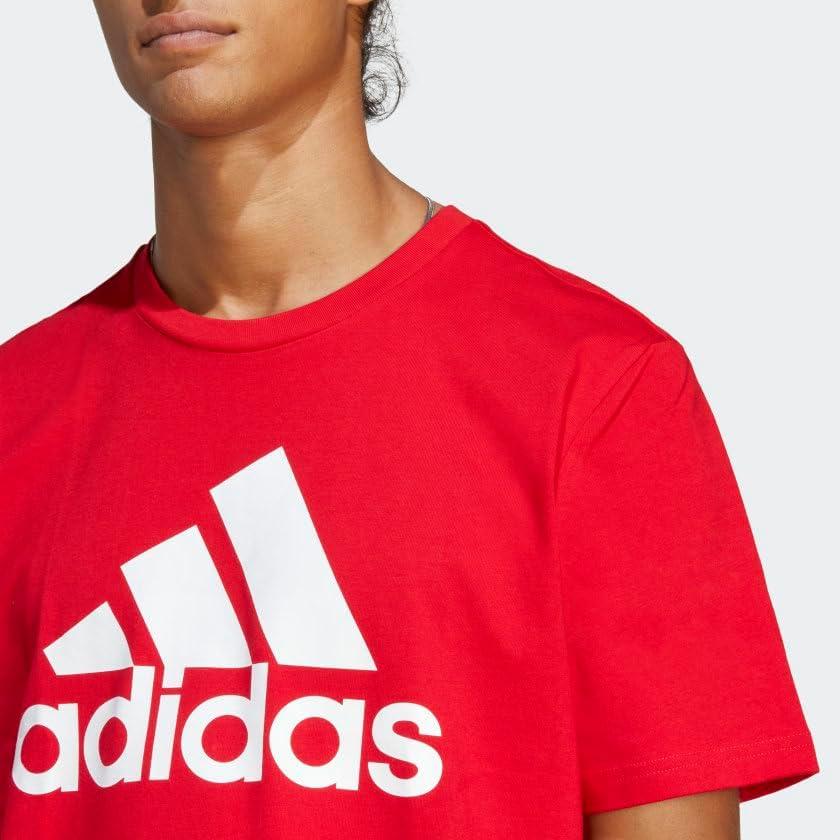 adidas Men’s Essentials Single Jersey 3-Stripes T-Shirt(Better Scarlet)