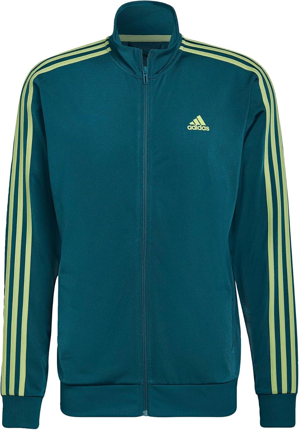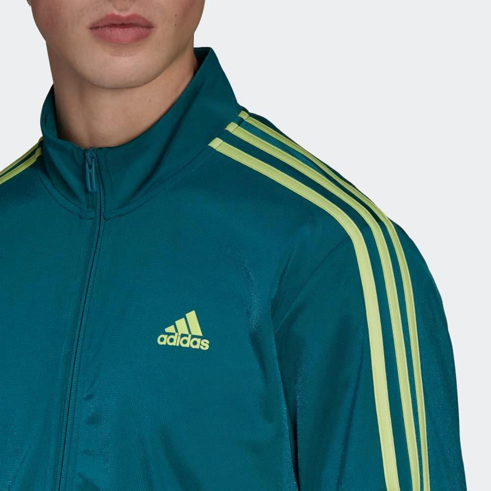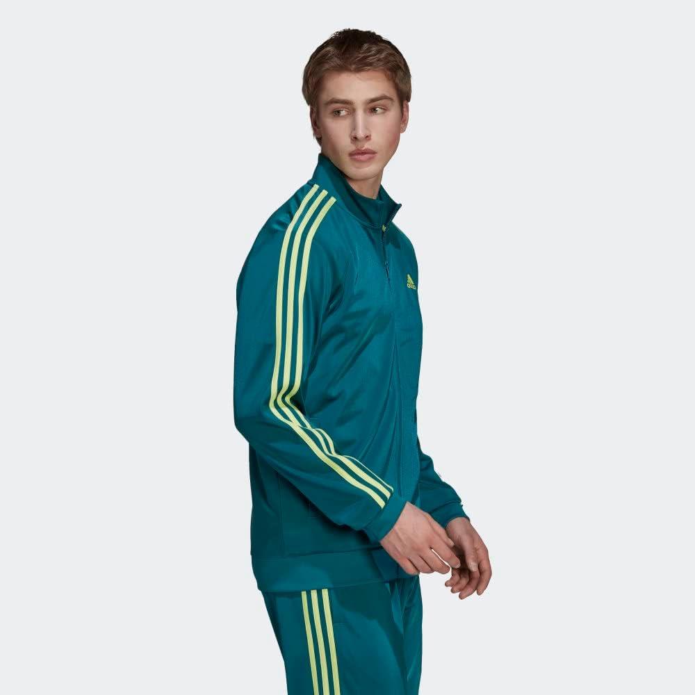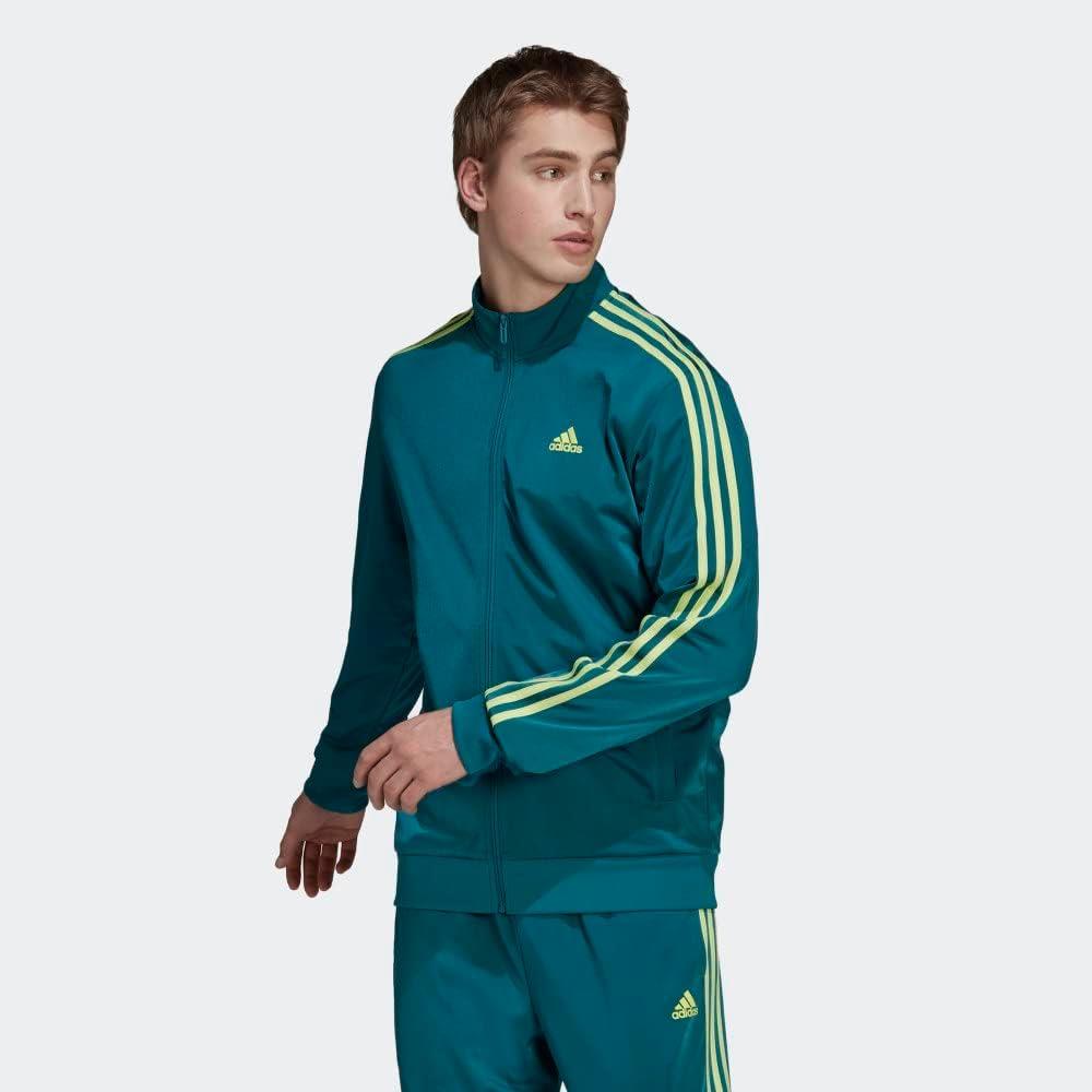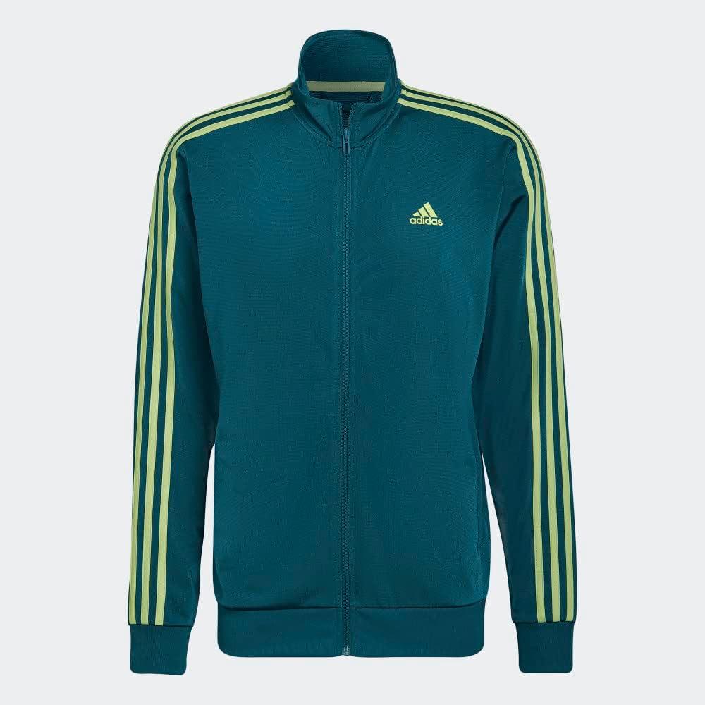 adidas mens Essentials Warm-up 3-stripes Track Top(Legacy Teal/Pulse Lime (Primegreen))