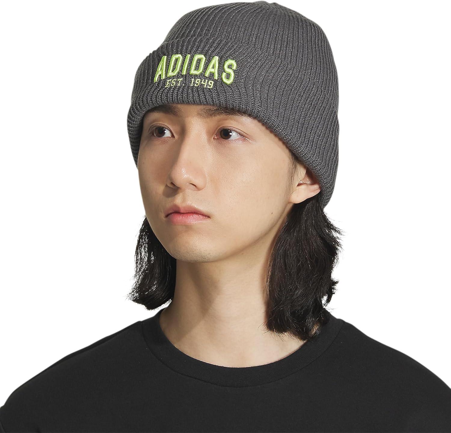 adidas Men’s Foundation Beanie, Standard Fit Cuffed Acrylic Knit Hat/Cap for Winter(Grey Six/Pulse Lime Green/Carbon Grey)