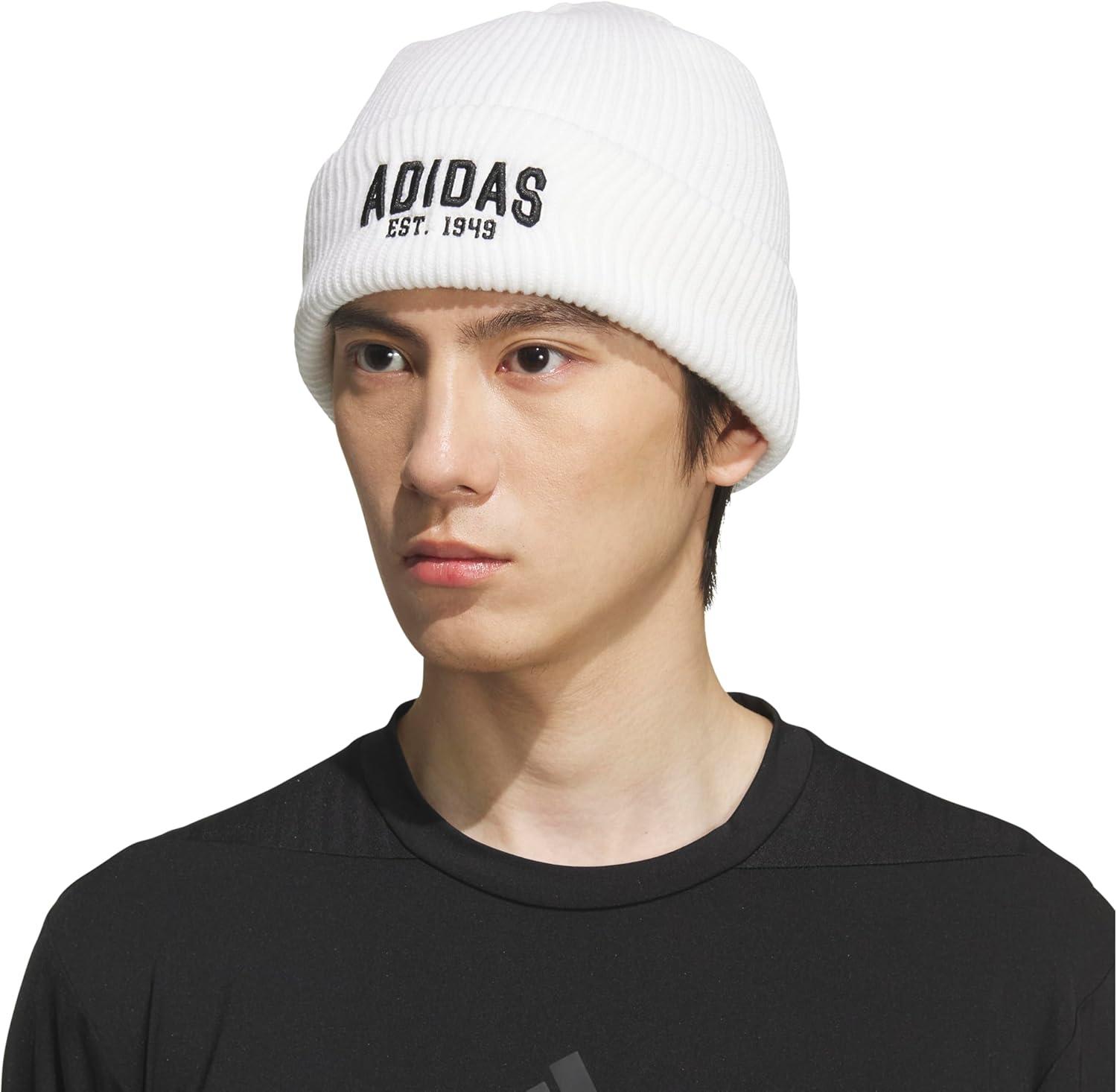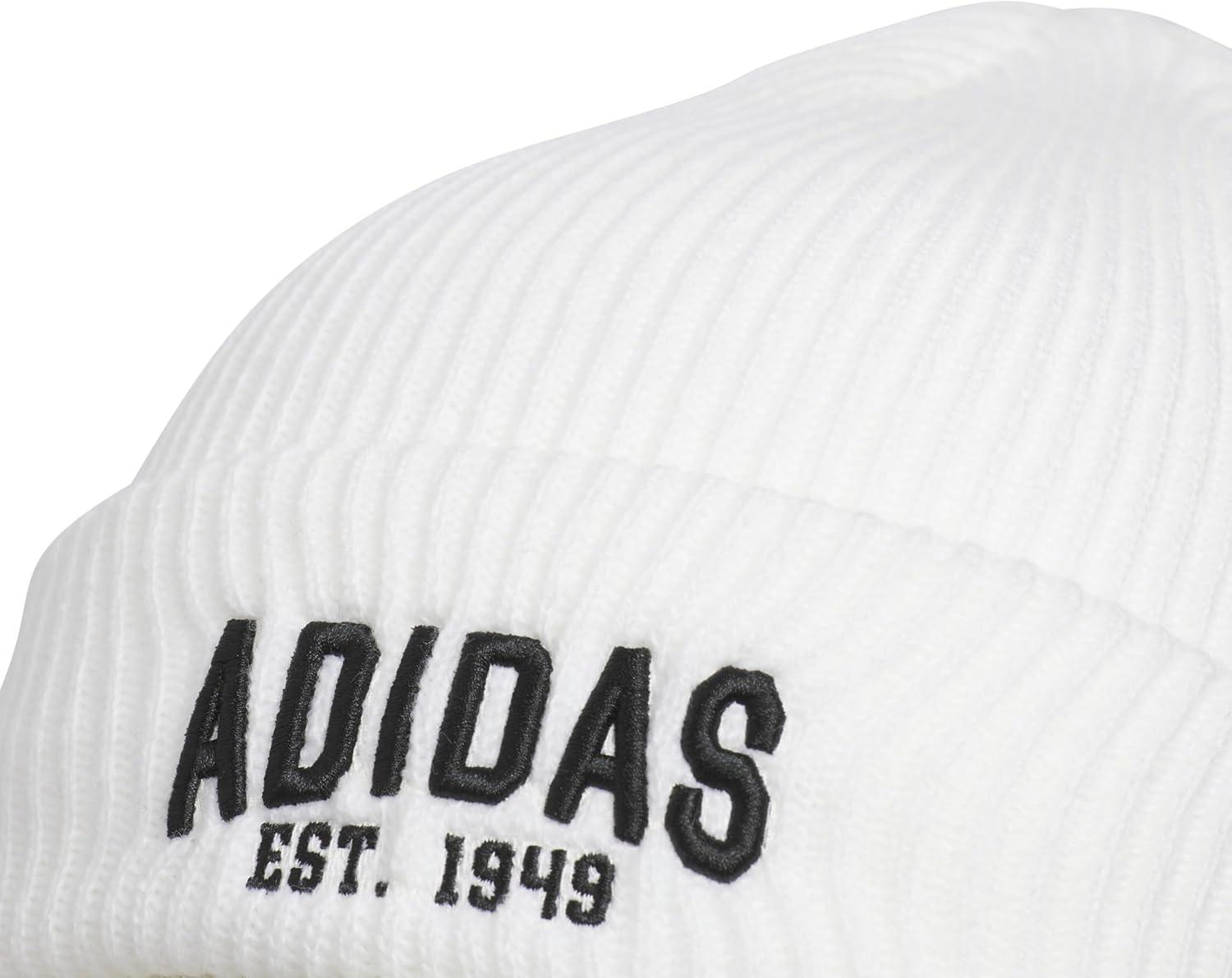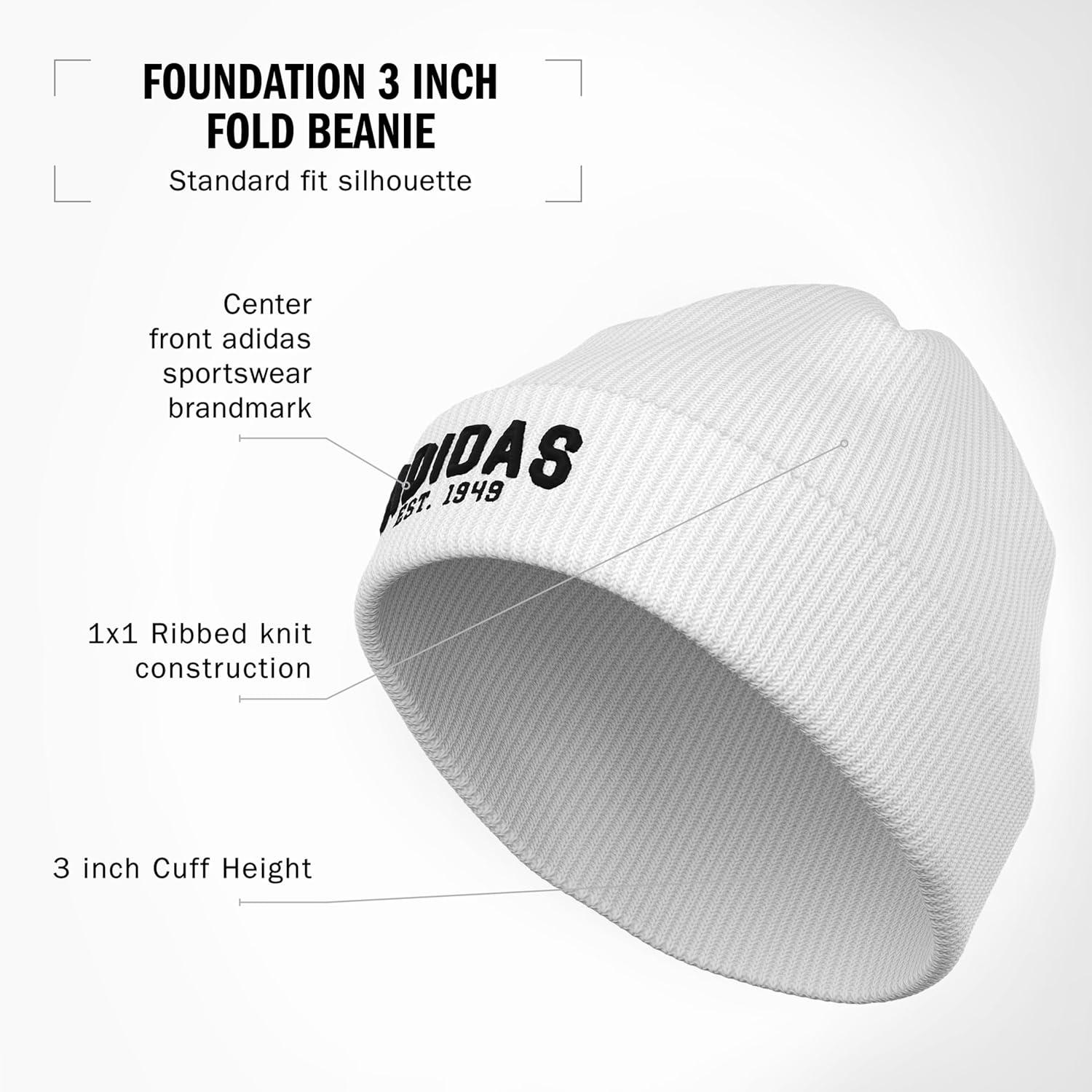 adidas Men’s Foundation Beanie, Standard Fit Cuffed Acrylic Knit Hat/Cap for Winter(White/Black)
