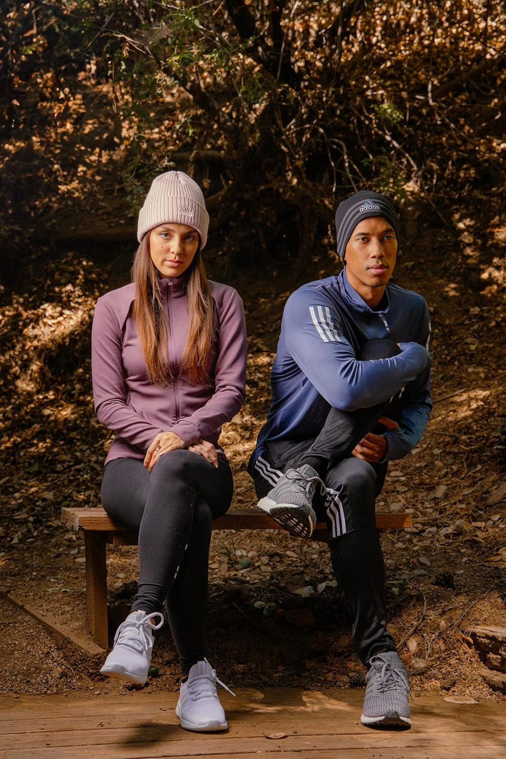 Go all-out adidas. This beanie is big on warmth and sporty appeal. Made from durable acrylic wool, it has a wide, fold-up cuff that's easy to adjust. It'll look just as good with a tailored coat as a hoodie.
