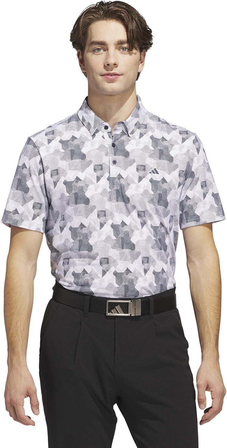 adidas Men’s Go-To Printed Golf Polo Shirt(White/Collegiate Navy)