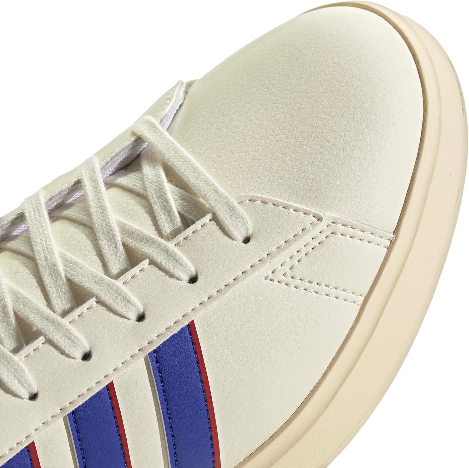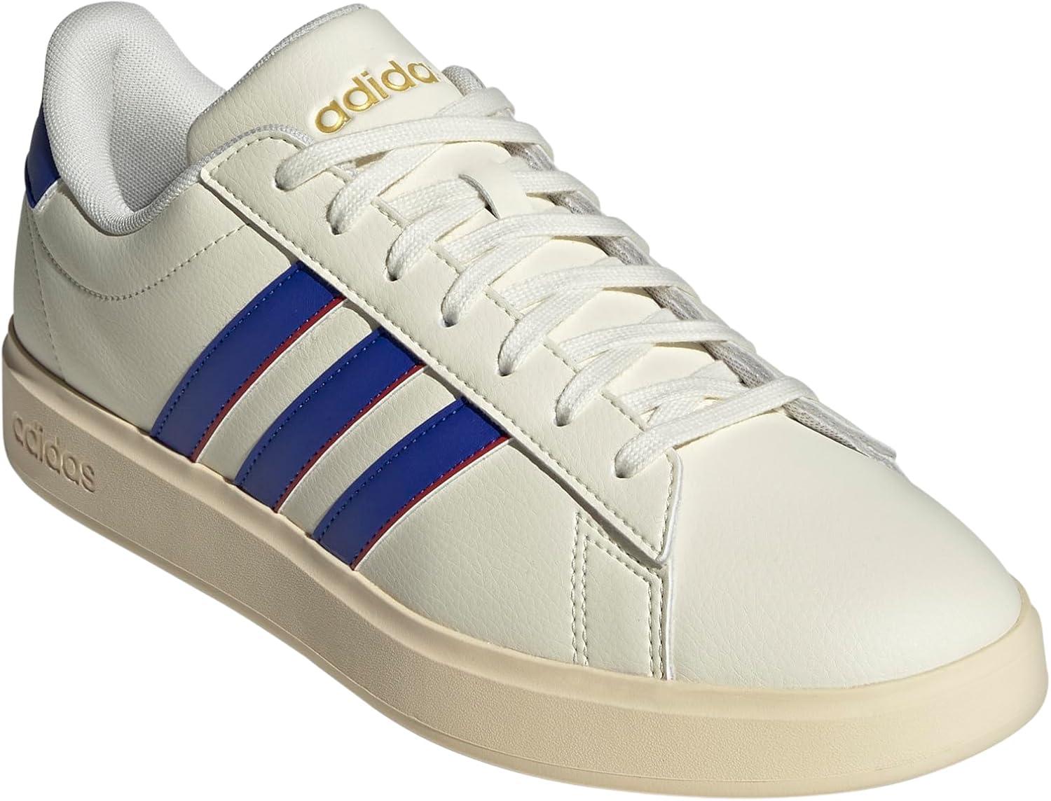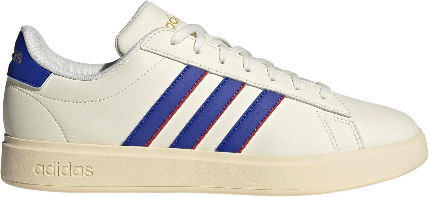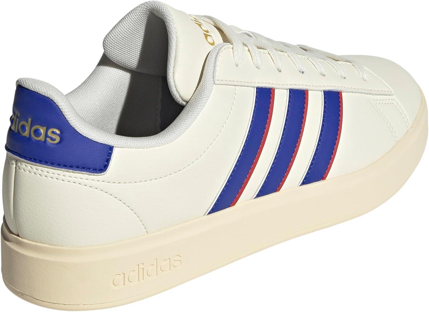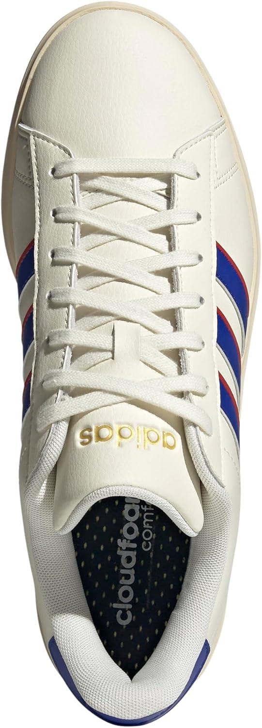 adidas Men’s Grand Court 2.0 Shoe(Off White/Lucid Blue/Better Scarlet)