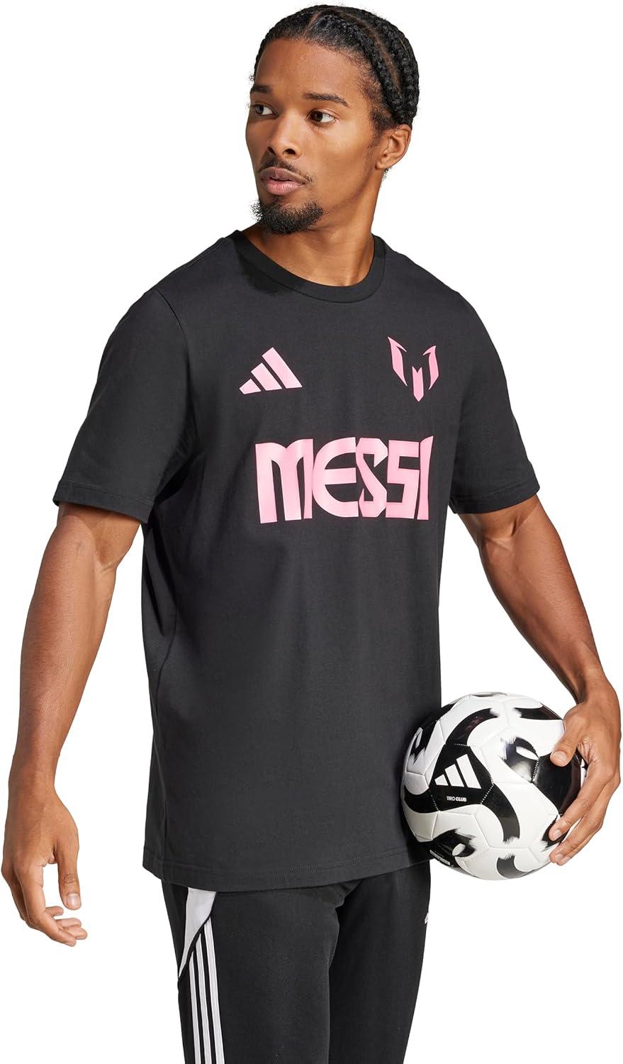 Celebrate the GOAT in this adidas graphic soccer t-shirt for men. Bold graphics of Lionel Messi's name and number pop on the front and back. Soft single jersey fabric keeps you comfortable whether you're scrimmaging in the park or cheering on the beautiful game's star player.