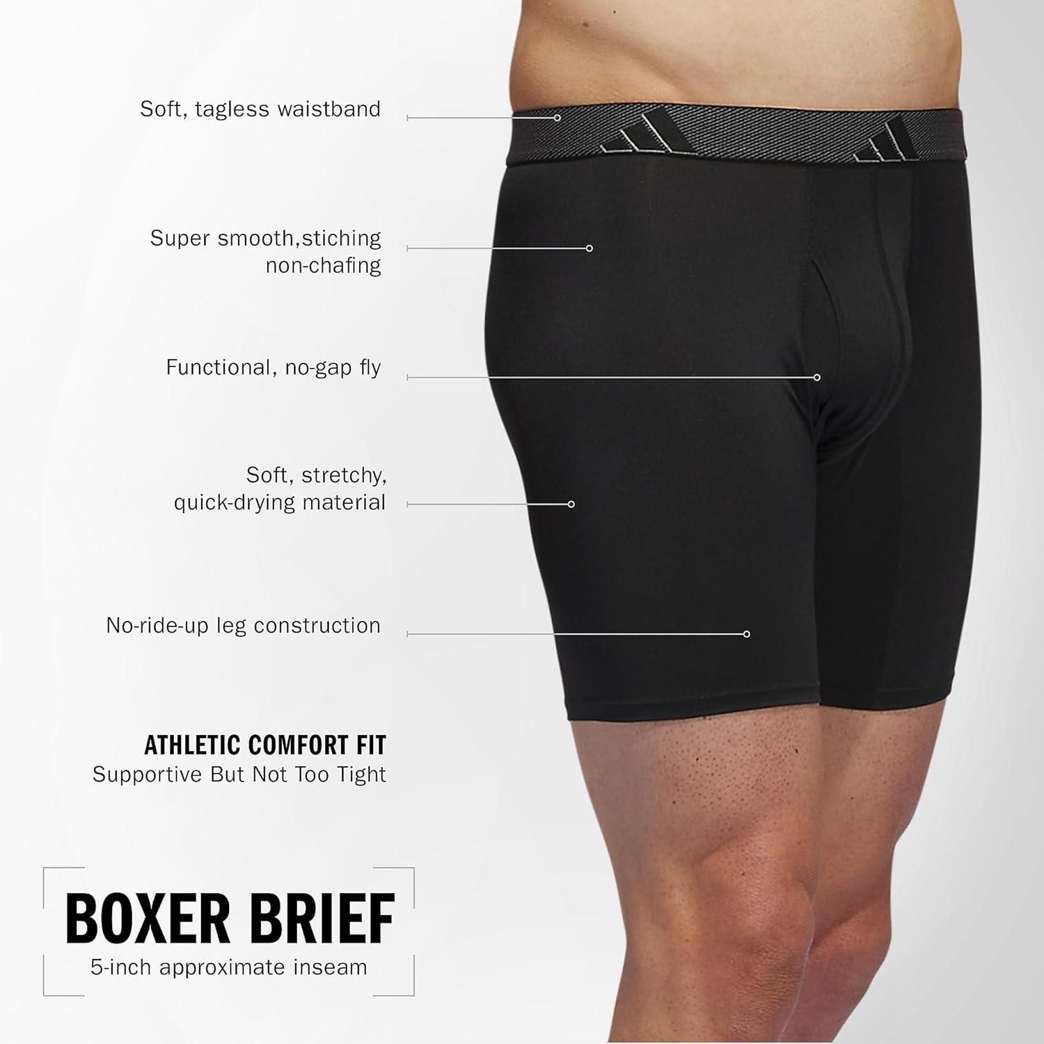 Introducing the adidas Men's Performance Boxer Brief Underwear, an essential choice for anyone seeking comfort and functionality. This 3-pack of men's athletic underwear is designed with the modern man in mind. Crafted with precision, the mens boxers briefs feature a 5-inch approximate inseam, offering all-day comfort with a performance edge. The mens boxer briefs quick-drying properties make helping you stay cool and dry, making them perfect for any activity. Our Adidas underwear men boxer brief blends soft, stretchy, quick-drying material with an athletic comfort fit. Each pair of boxer briefs men comes equipped with a functional, no-gap fly for added practicality. The plush-soft tagless waistband and super smooth stitching make these underwear mens a top choice for the ultimate in ease and wearability. Whether you need boxer briefs for men for workouts or everyday wear, adidas boxer briefs men deliver. Experience the comfortable feel of this underwear men boxer briefs collection, designed to keep you at your best. Choose adidas Microfiber Boxer Briefs for a blend of style, comfort, and durability.