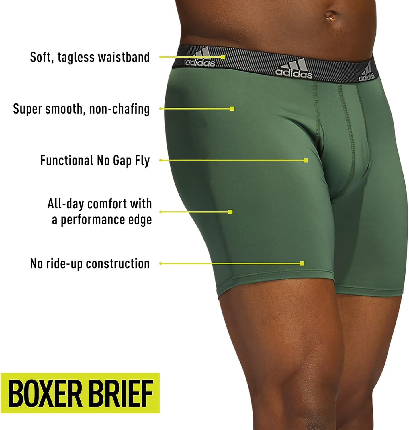 Introducing the adidas Men's Performance Boxer Brief Underwear, an essential choice for anyone seeking comfort and functionality. This 3-pack of men's athletic underwear is designed with the modern man in mind. Crafted with precision, the mens boxers briefs feature a 5-inch approximate inseam, offering all-day comfort with a performance edge. The mens boxer briefs quick-drying properties make helping you stay cool and dry, making them perfect for any activity. Our Adidas underwear men boxer brief blends soft, stretchy, quick-drying material with an athletic comfort fit. Each pair of boxer briefs men comes equipped with a functional, no-gap fly for added practicality. The plush-soft tagless waistband and super smooth stitching make these underwear mens a top choice for the ultimate in ease and wearability. Whether you need boxer briefs for men for workouts or everyday wear, adidas boxer briefs men deliver. Experience the comfortable feel of this underwear men boxer briefs collection, designed to keep you at your best. Choose adidas Microfiber Boxer Briefs for a blend of style, comfort, and durability.