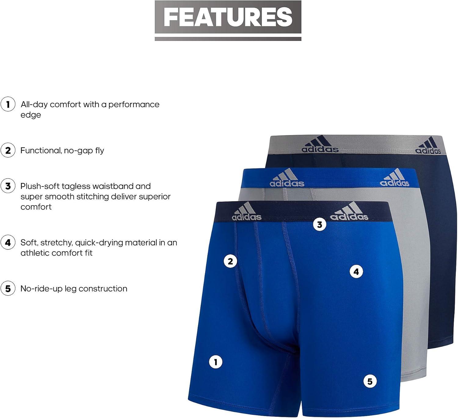 adidas Men’s Microfiber Boxer Briefs Underwear (Multipack) Athletic Stretch-Fit(Collegiate Royal Blue/Grey/Collegiate Navyperformance)
