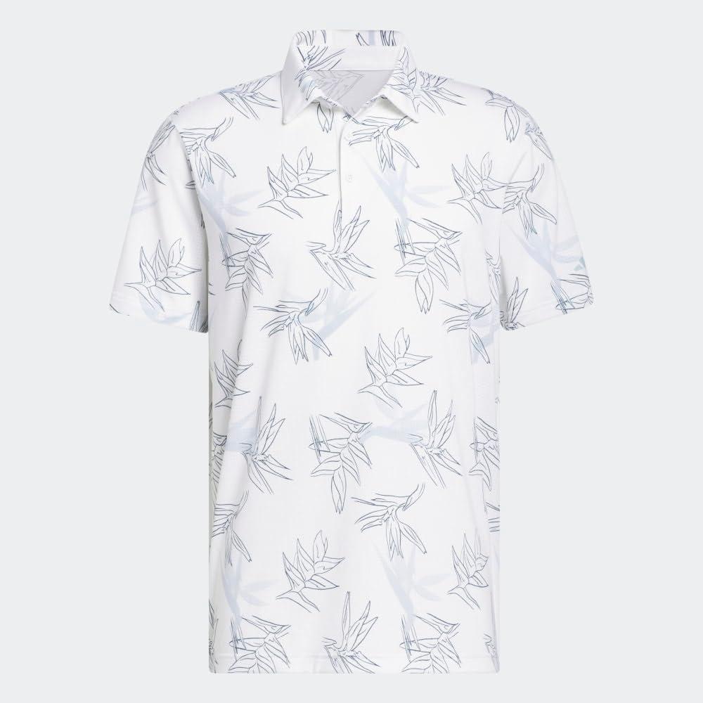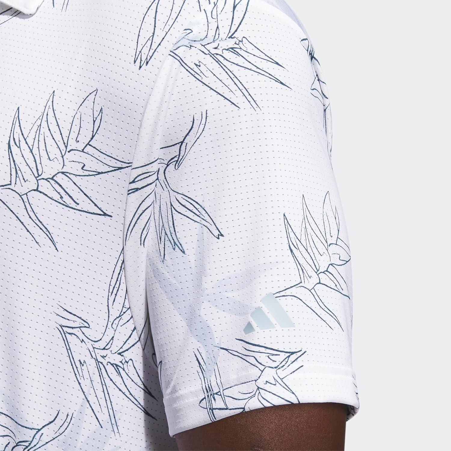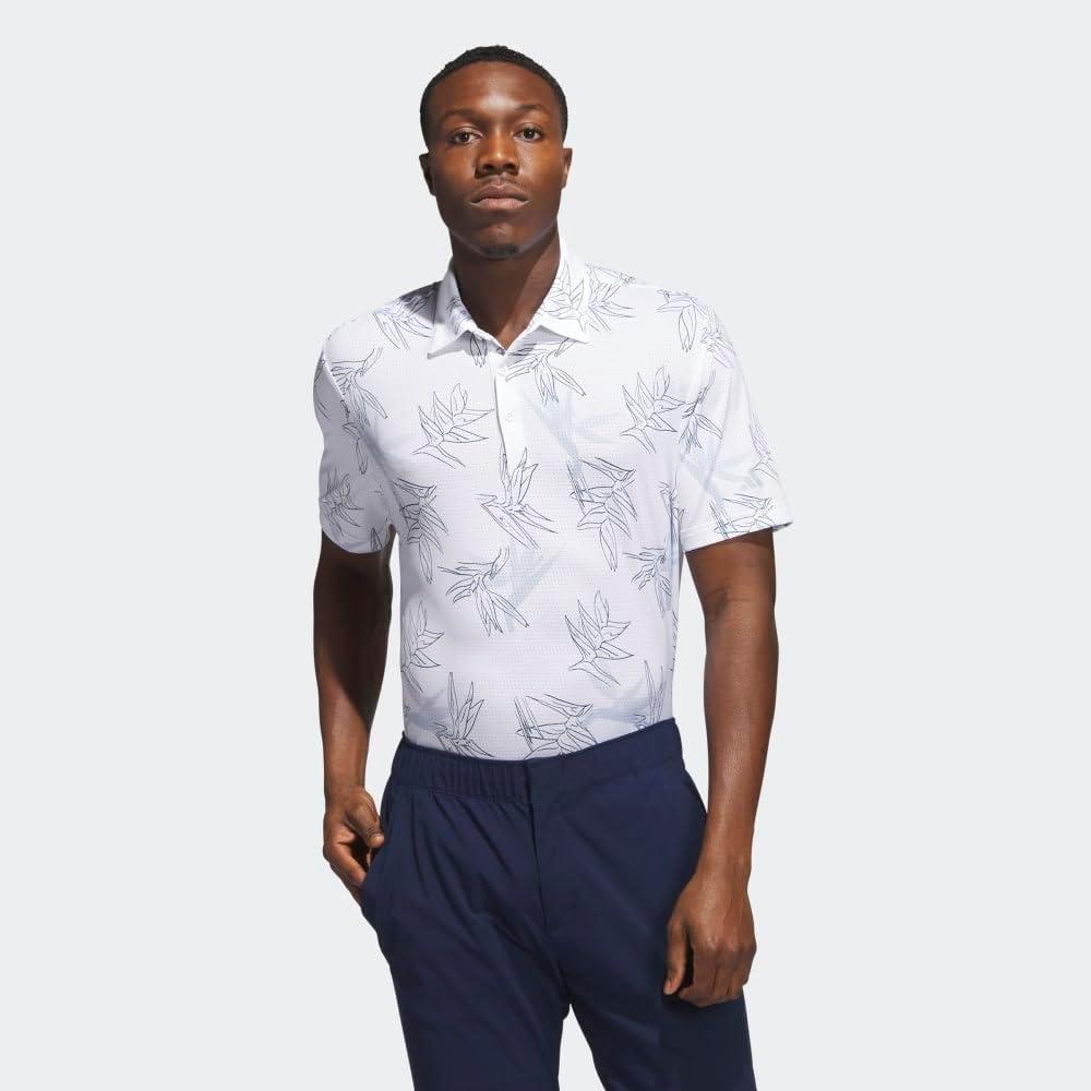 Show your love for nature while you work on your game in this men's adidas golf polo shirt. It's made of a soft and stretchy fabric and has a lively oasis-inspired allover print. Made with a series of recycled materials, and at least 70% recycled content, this product represents just one of our solutions to help end plastic waste.