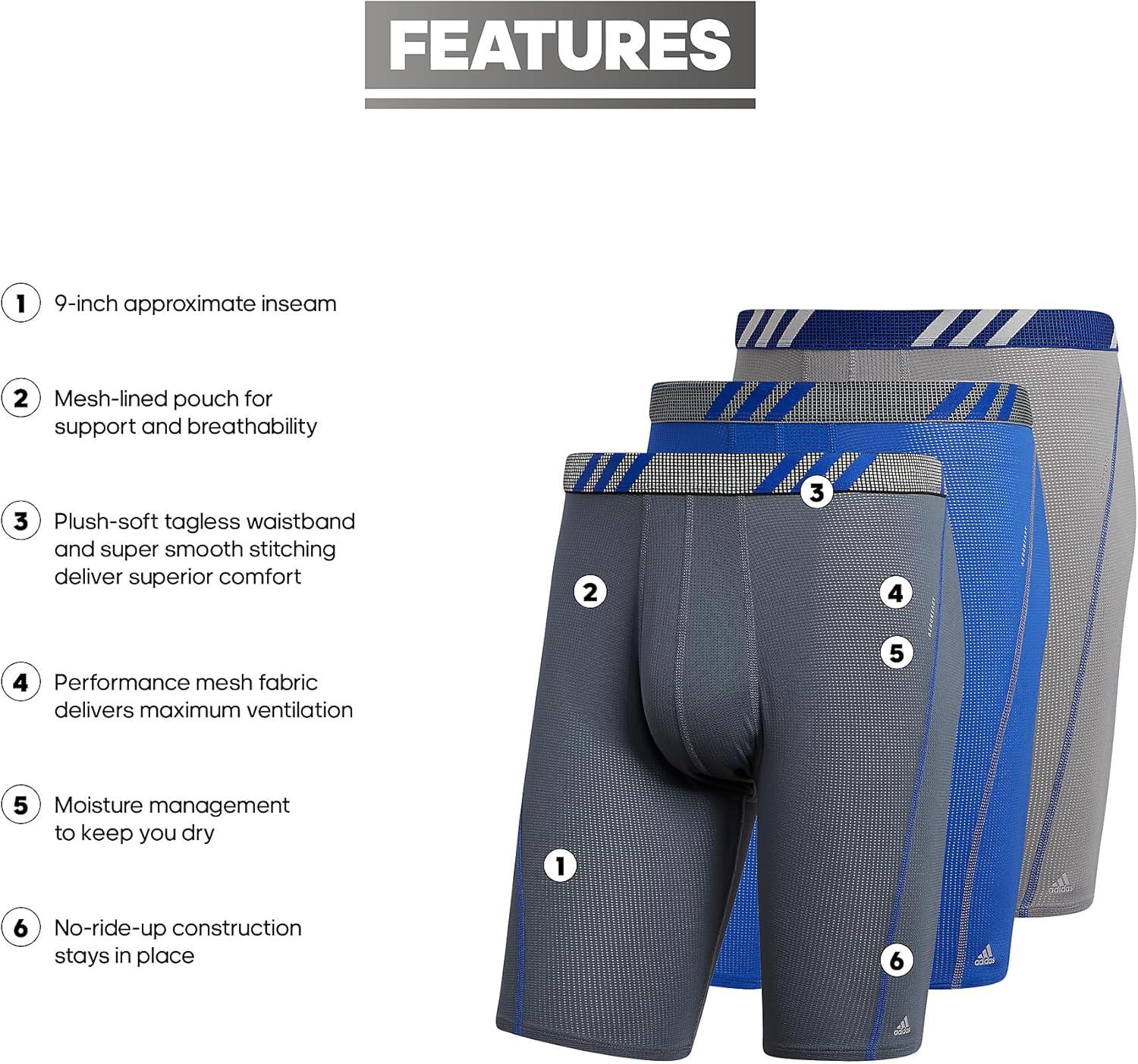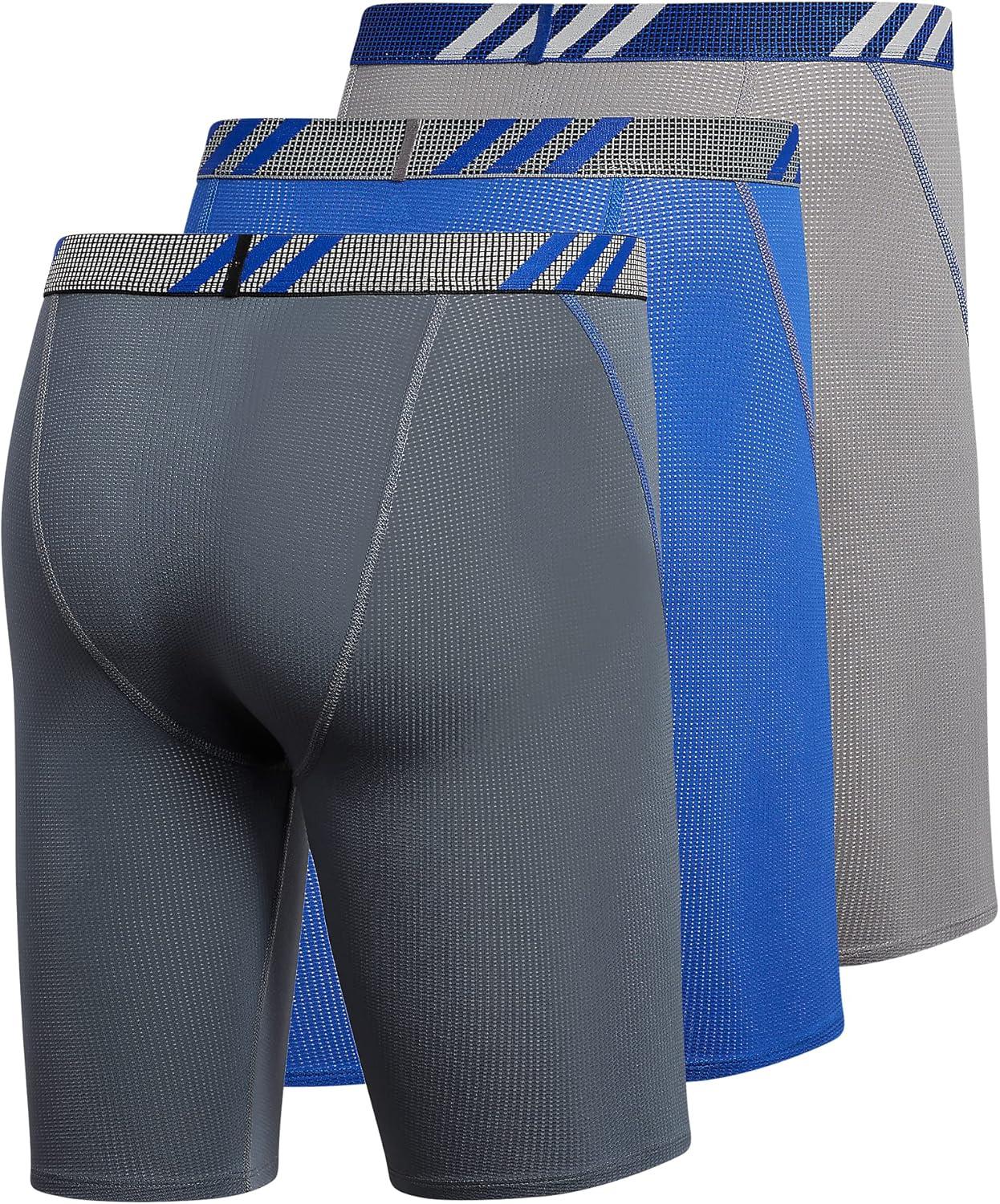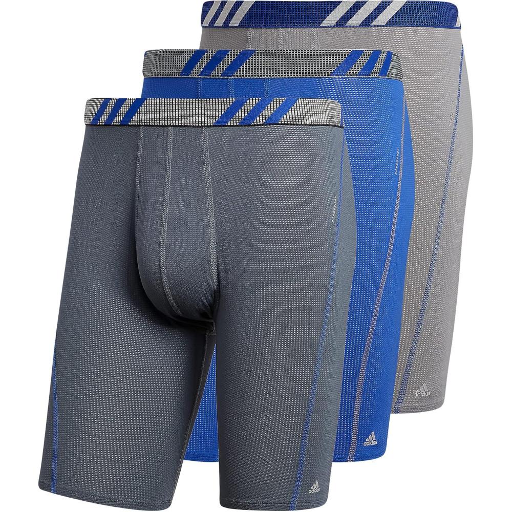 adidas Men’s Performance Mesh Long Boxer Brief Underwear (3-Pack), for active sport and all day comfort(Onix Grey/Bold Blue/Grey)