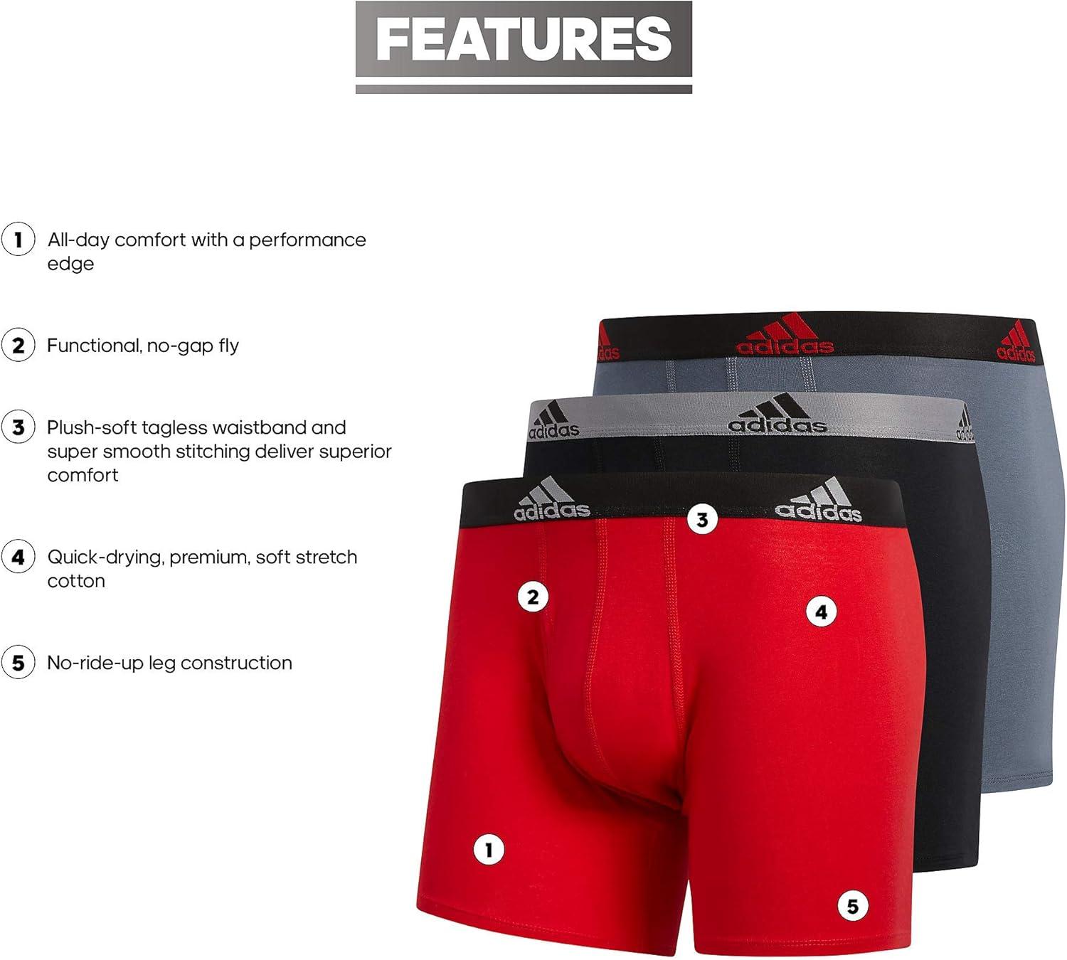 adidas Men’s Performance Stretch Cotton Boxer Briefs 3-Pack, Soft Underwear, Superior Comfort(Scarlet Red/Black/Onix Grey)
