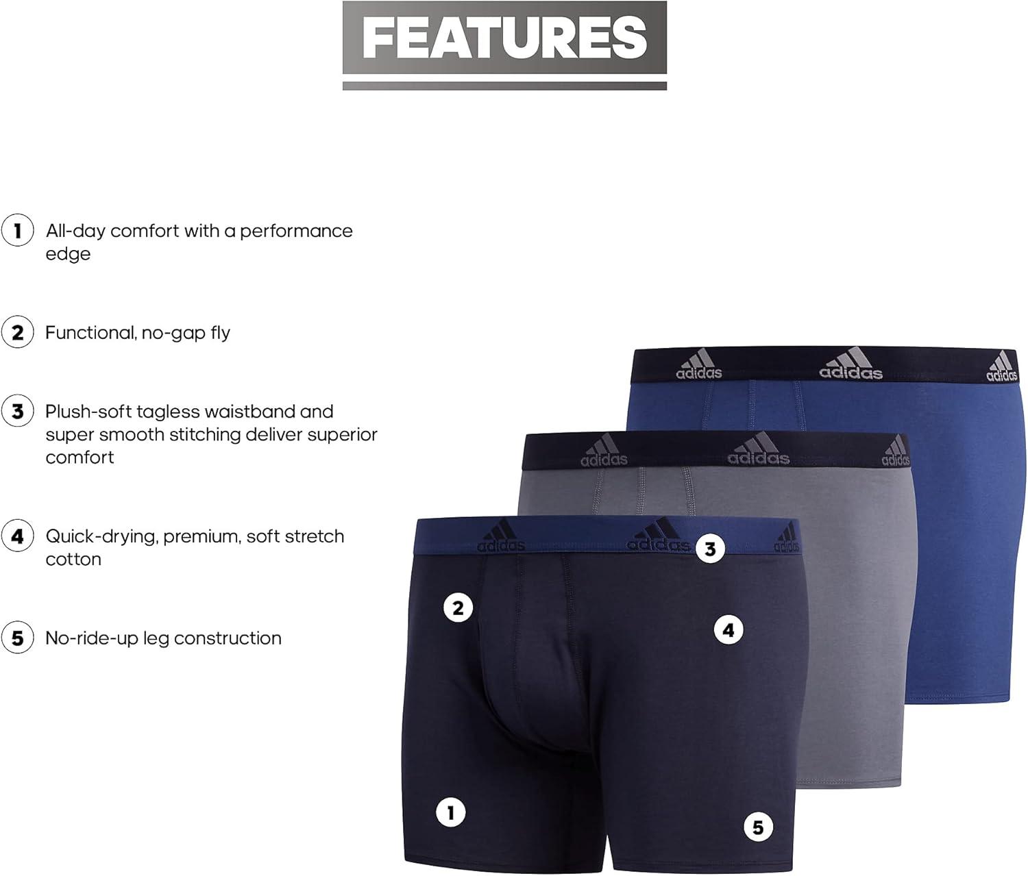 adidas Men’s Performance Stretch Cotton Boxer Briefs 3-Pack, Soft Underwear, Superior Comfort(Tech Indigo/Legend Ink Onix/Legend Ink Legend Ink/Tech Indigo)