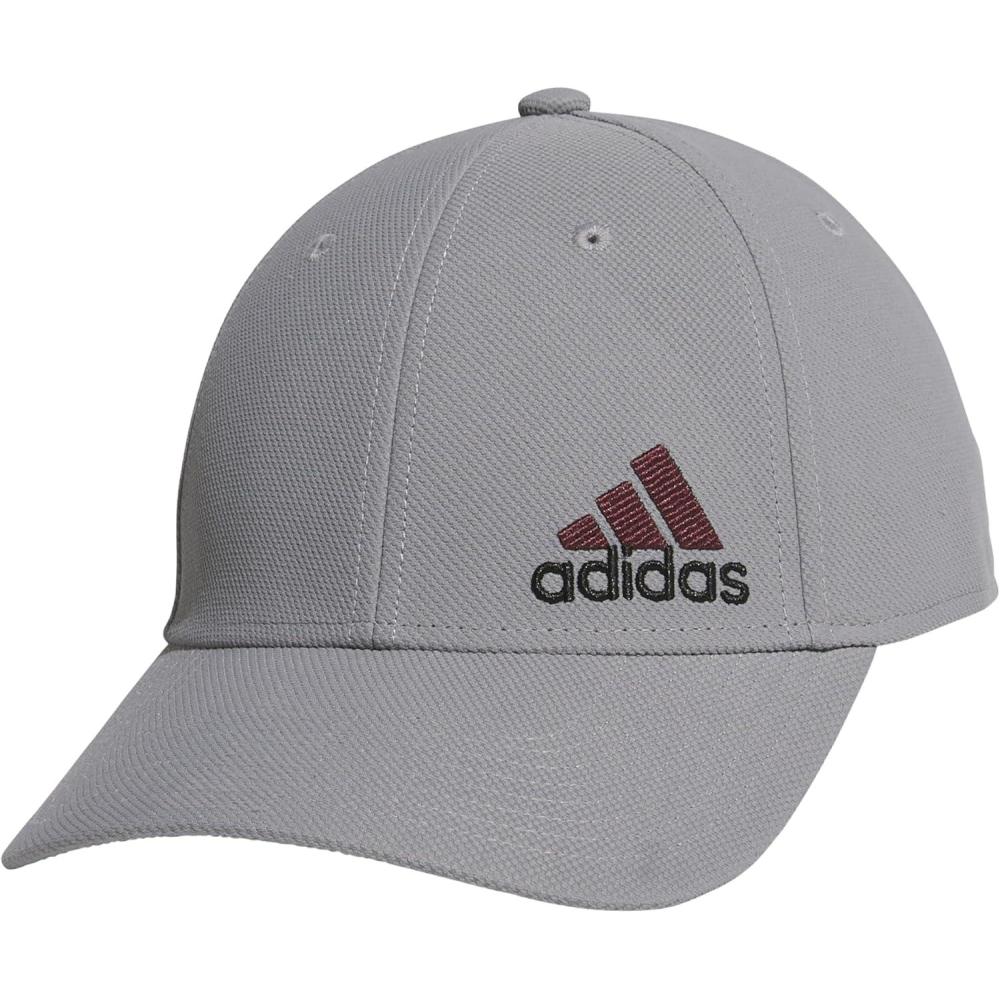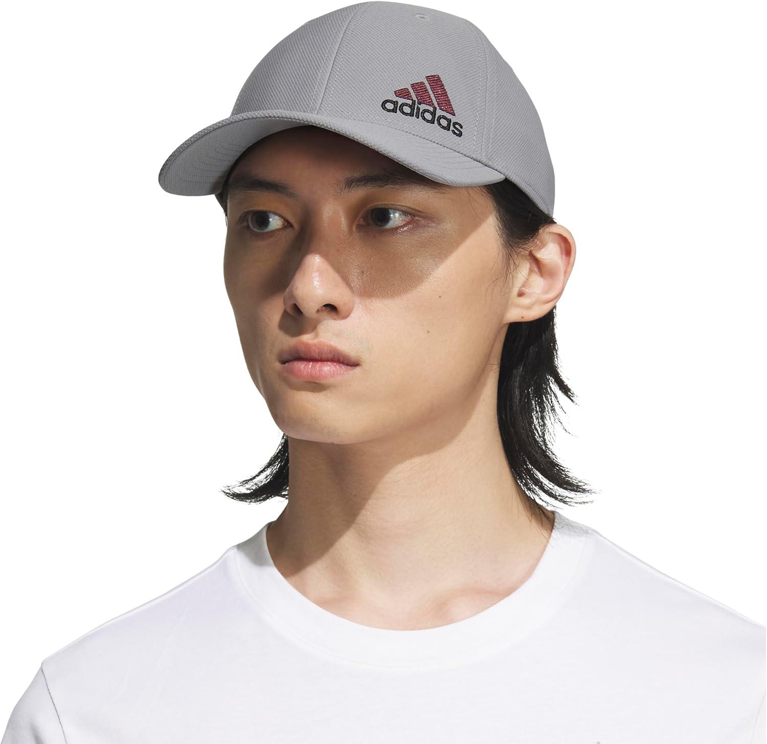 adidas Men’s Release 3 Structured Stretch Fit Cap(Grey Three/Aurora Ruby Red/Black)