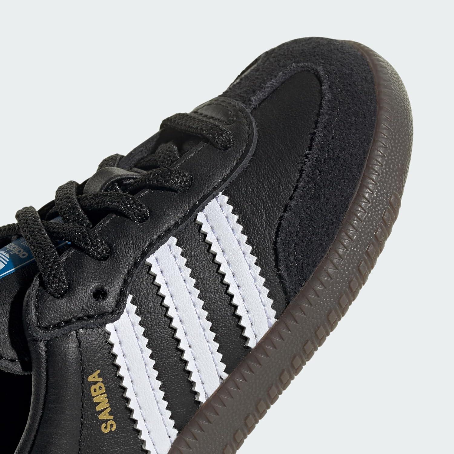 Developed in the '50s for football training on frozen ground, the Samba has become a stone-cold classic. Equally at home on the court or street, these boots have a full grain leather upper with suede overlays to resist abrasion. Underneath, a foam midsole cushions every step. Hard-wearing and supportive Full grain leather upper with suede overlays offer support Signature Samba details Suede T-toe, long tongue and serrated 3-Stripes Traction on flat surfaces Non-marking gum rubber outsole for excellent grip on all indoor surfaces