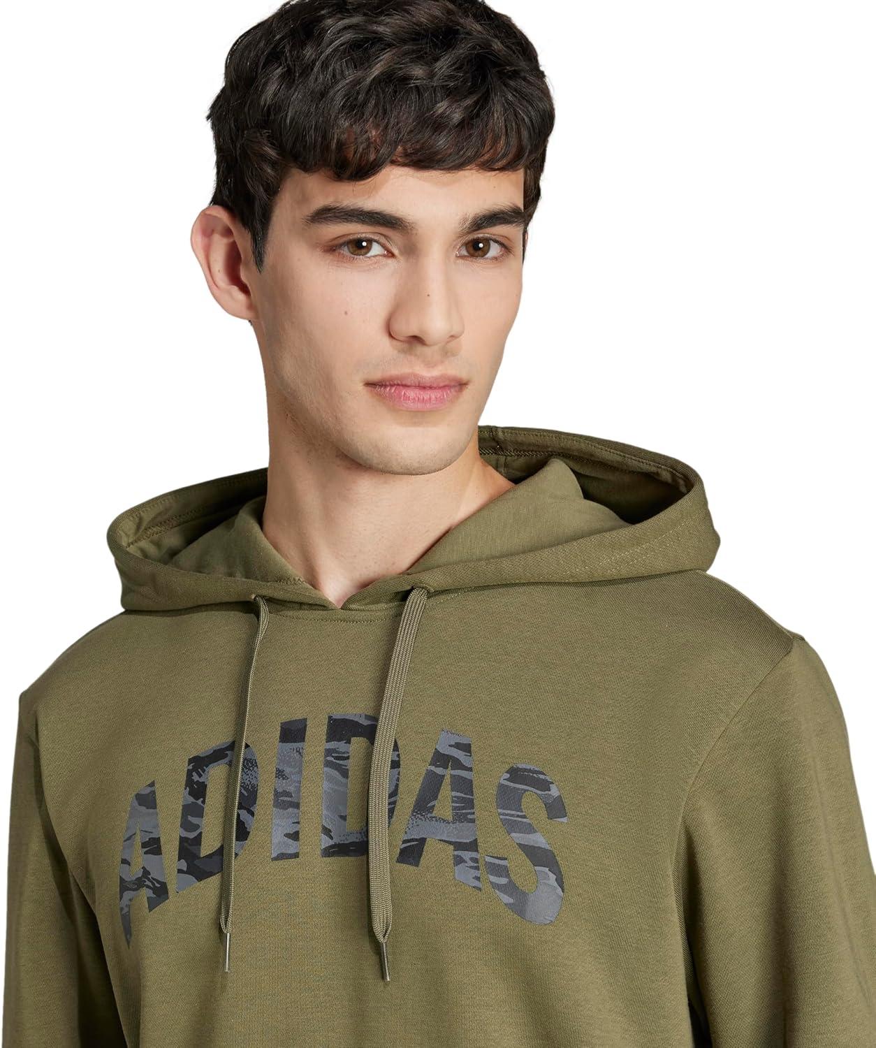 adidas Men’s Size Codes Camouflage Linear Graphic Hoodie(Olive Strata)