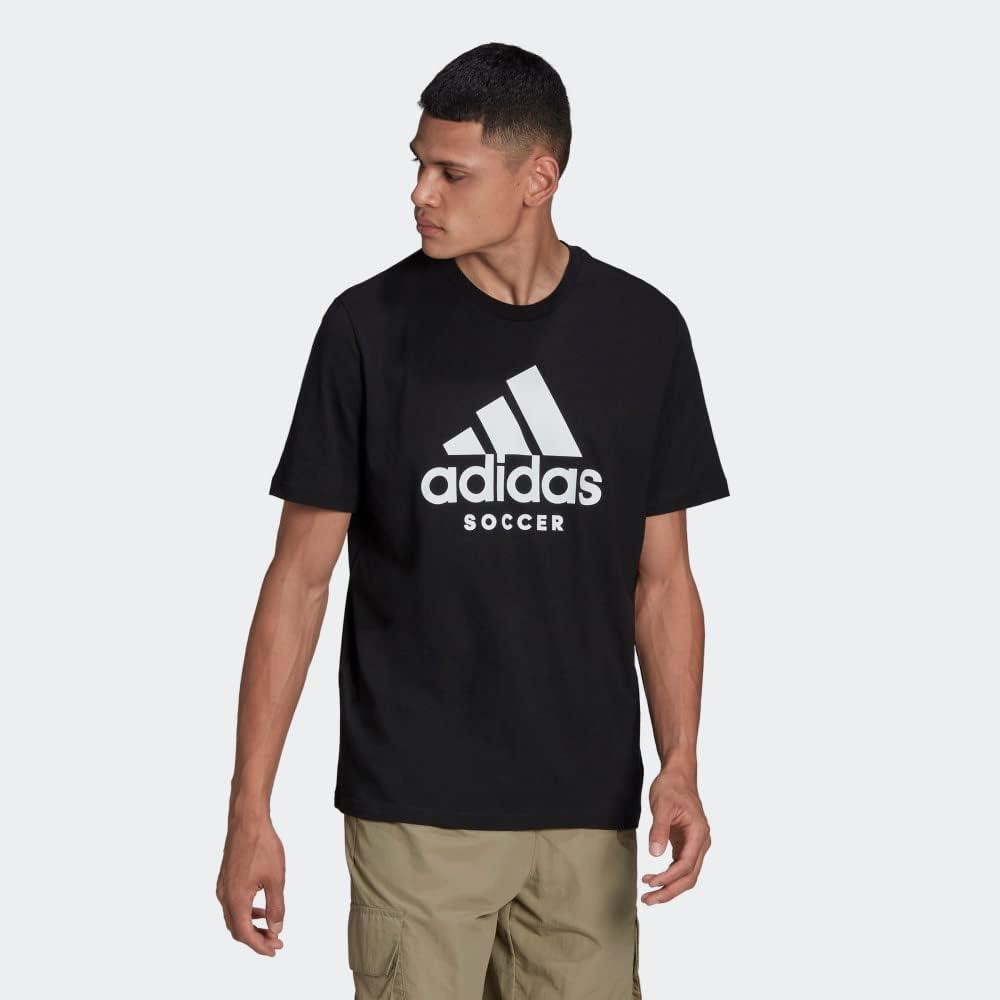 It's the world's biggest sport, and you're part of it. Let everyone see your love of soccer in this classic all-cotton t-shirt for men. An adidas Badge of Sport puts you on the winning team.