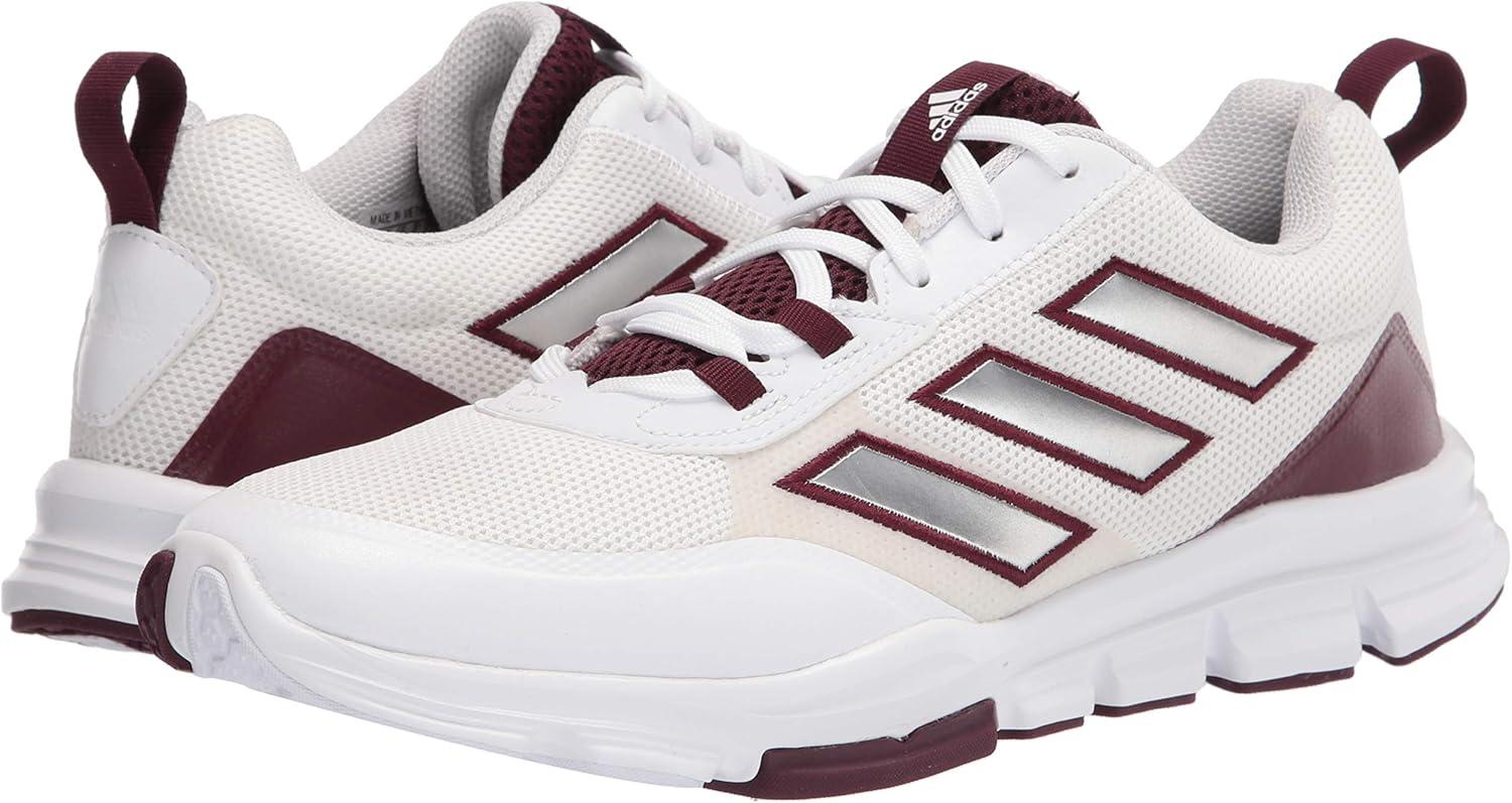 adidas Men’s Speed Trainer 5 Baseball Shoe(White/Silver Metallic/Team Maroon)