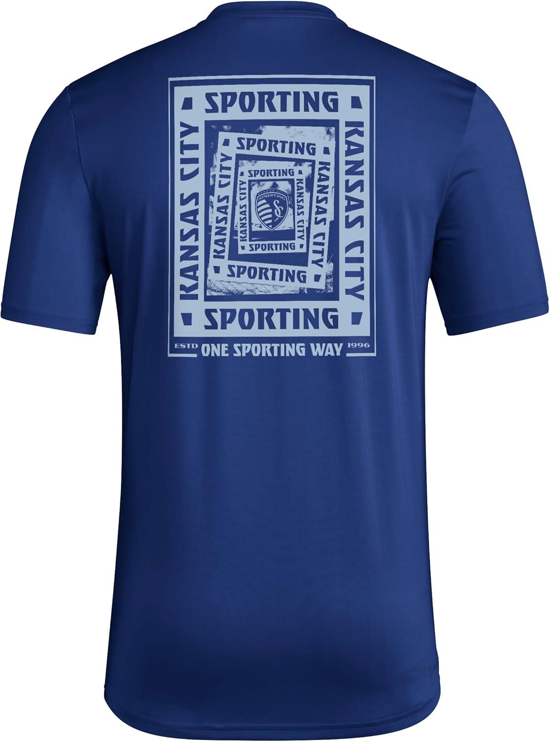 adidas Men’s Sporting Kansas City Local Warp Pre-Game Short Sleeve T-Shirt(Team Navy Blue/Sporting Kansas City)