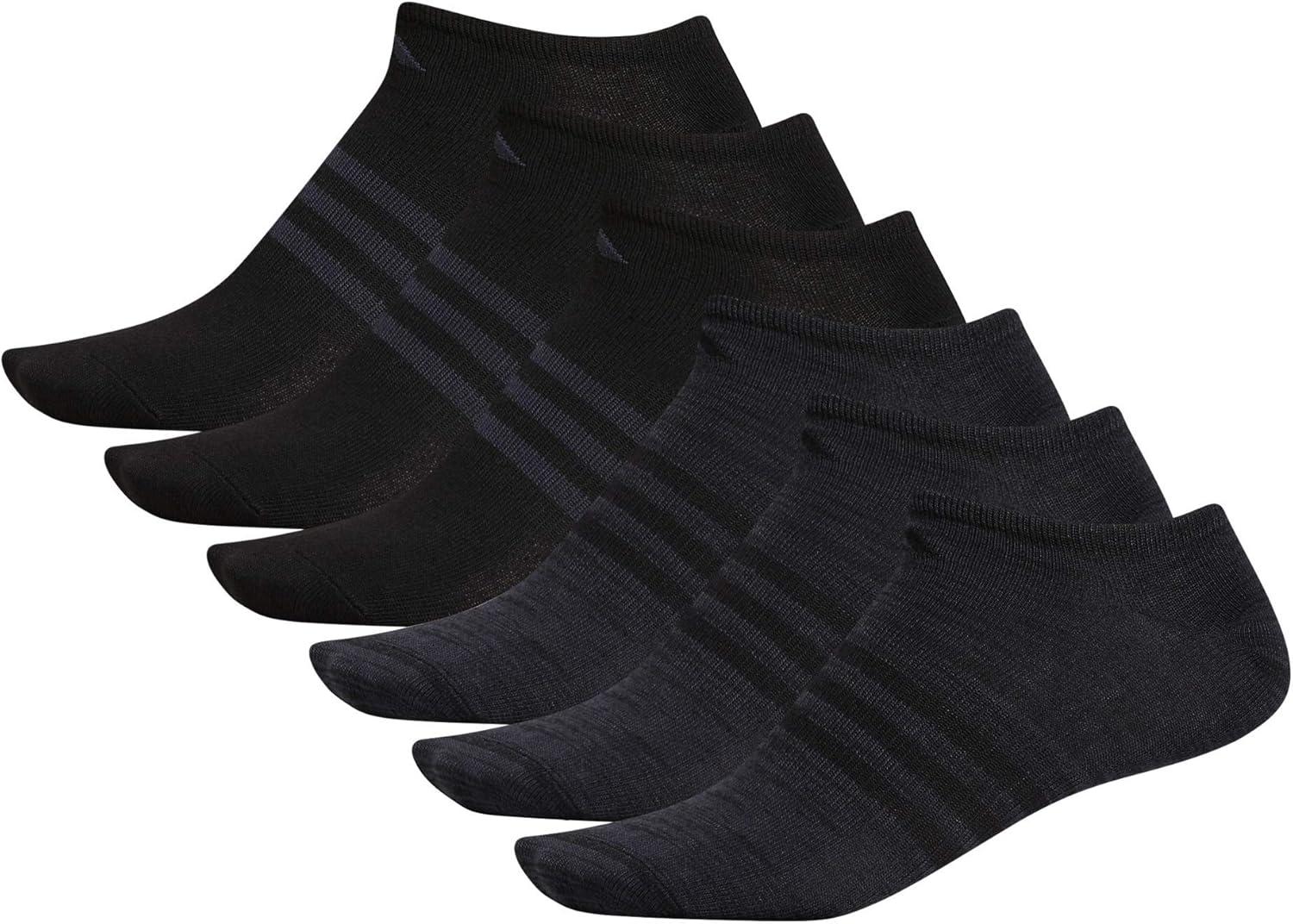 adidas Men’s Superlite No Show Socks with Arch Compression, Athletic, Durable, Lightweight, Breathable, 6-Pack(Black/Night Grey/2.0)