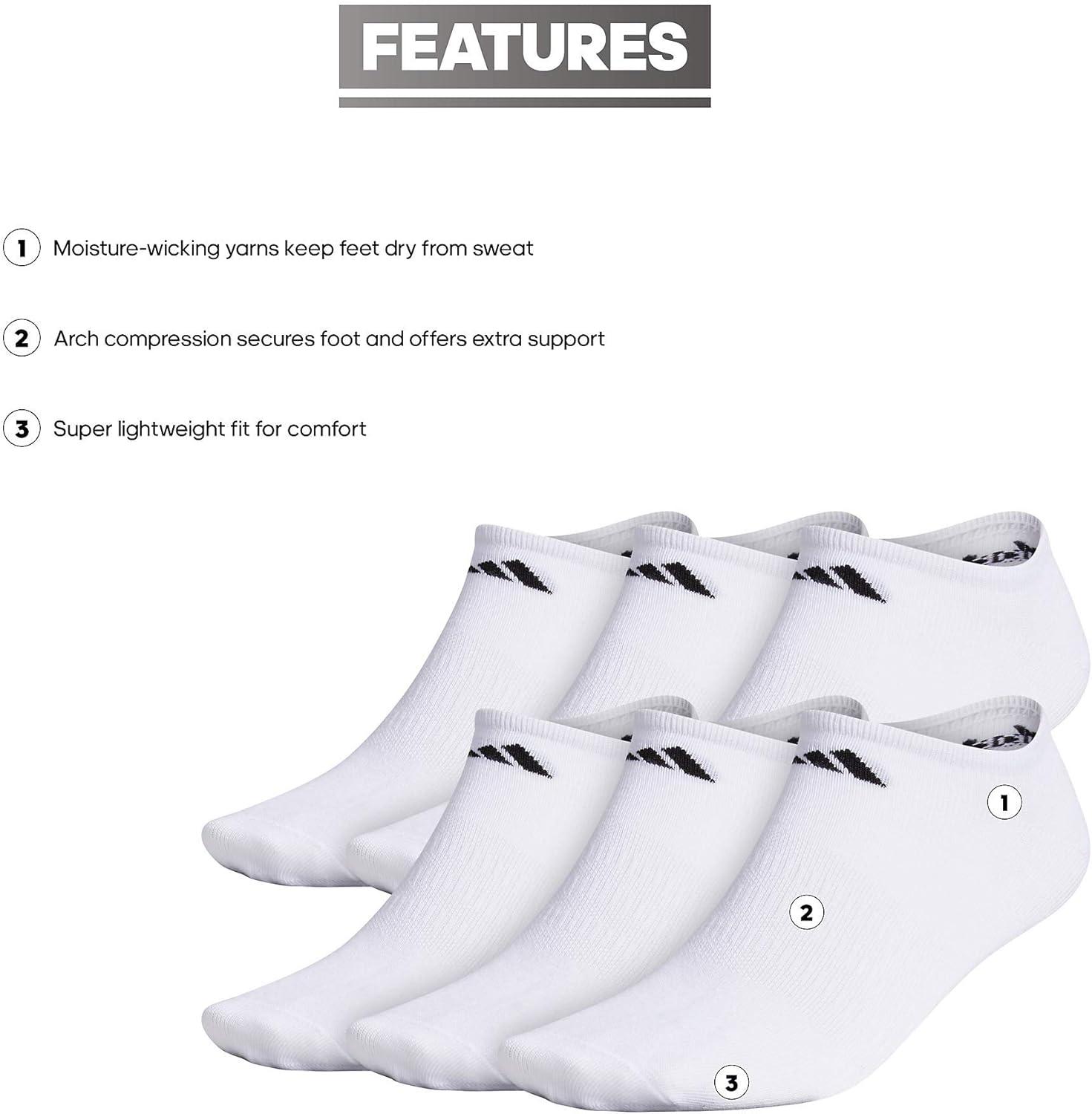 adidas Men’s Superlite No Show Socks with Arch Compression, Athletic, Durable, Lightweight, Breathable, 6-Pack(White/Black/2.0)