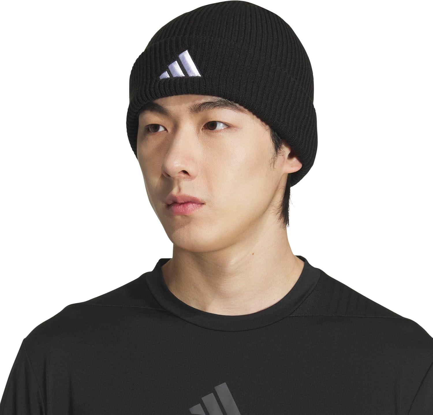 adidas Men’s Team Issue Beanie, Standard Fit Cuffed Acrylic Knit Hat/Cap for Winter(Black/White/2.0)