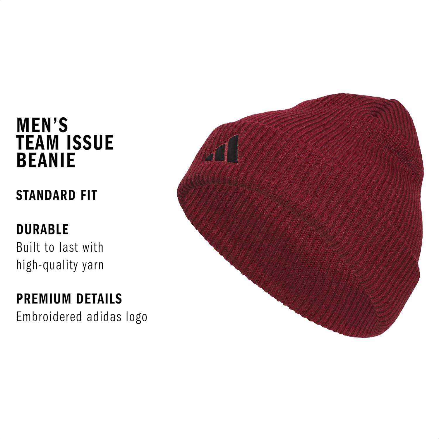 adidas Men’s Team Issue Beanie, Standard Fit Cuffed Acrylic Knit Hat/Cap for Winter(Collegiate Burgundy/Black/2.0)