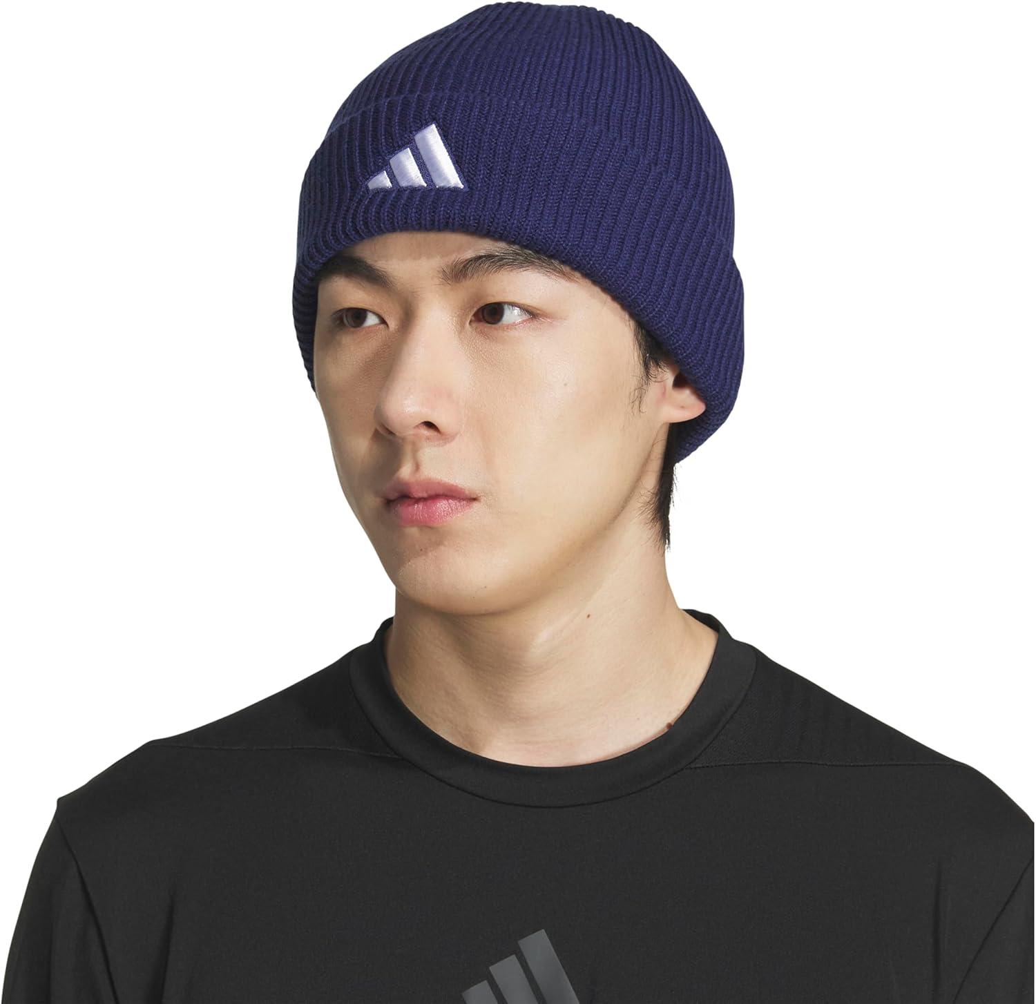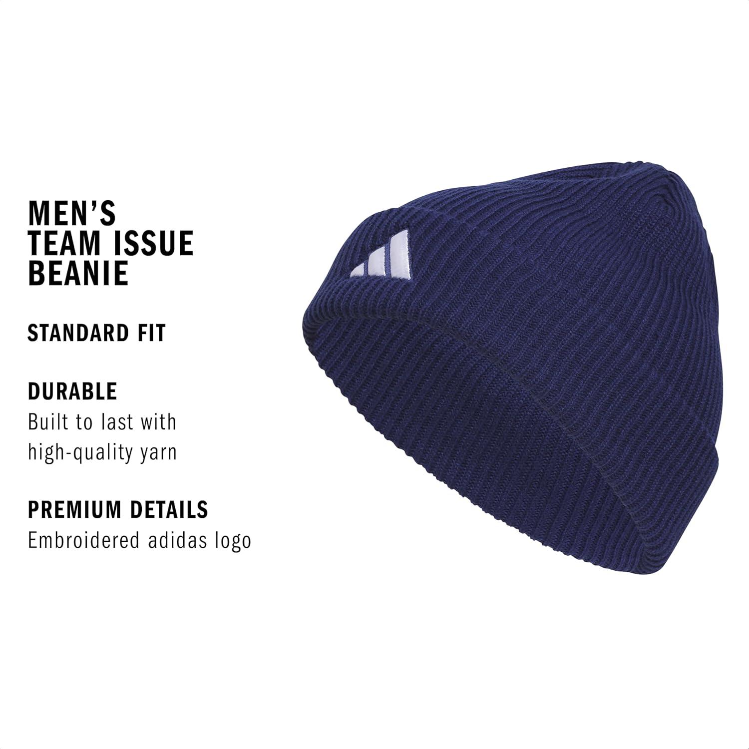 adidas Men’s Team Issue Beanie, Standard Fit Cuffed Acrylic Knit Hat/Cap for Winter(Dark Blue/White/2.0)