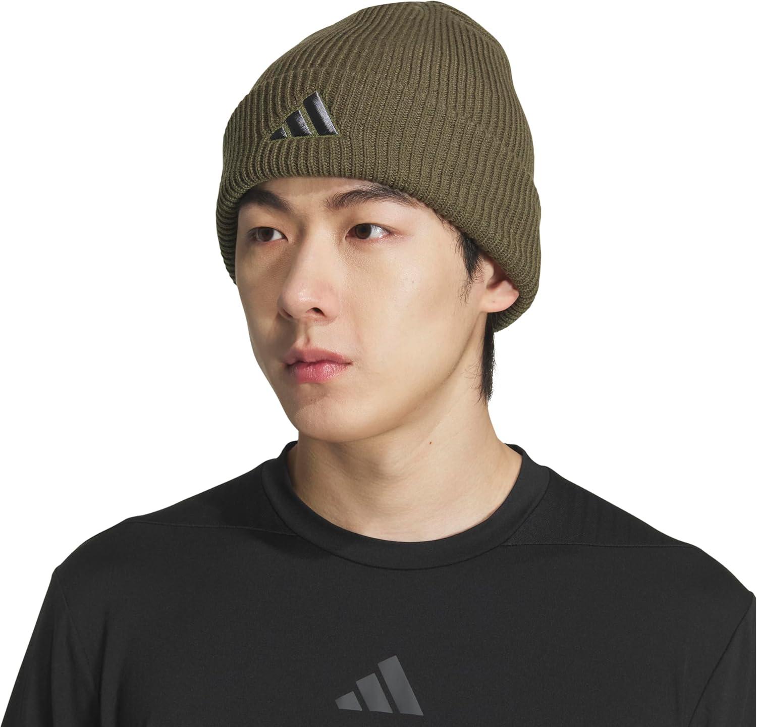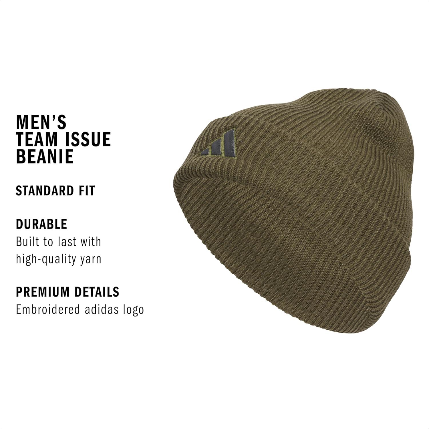 adidas Men’s Team Issue Beanie, Standard Fit Cuffed Acrylic Knit Hat/Cap for Winter(Olive Strata Green/Grey Six/2.0)