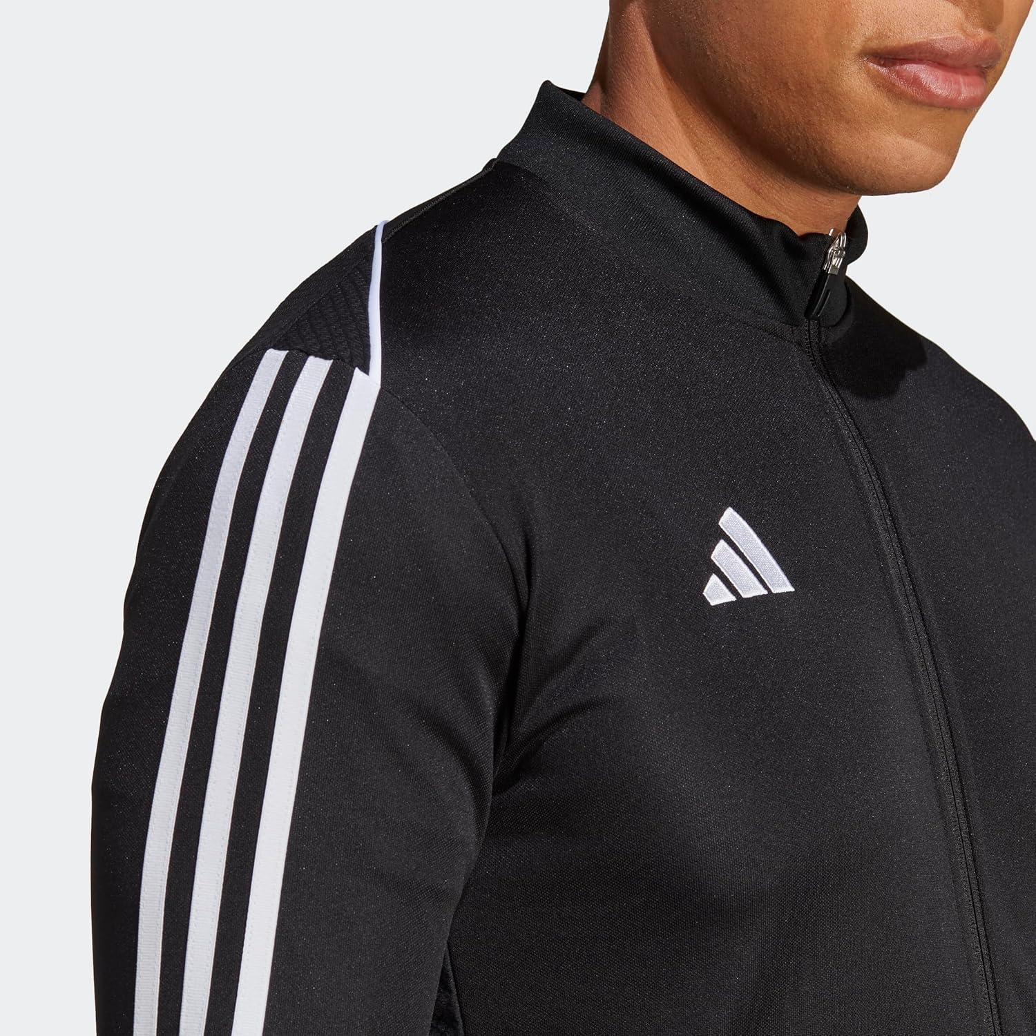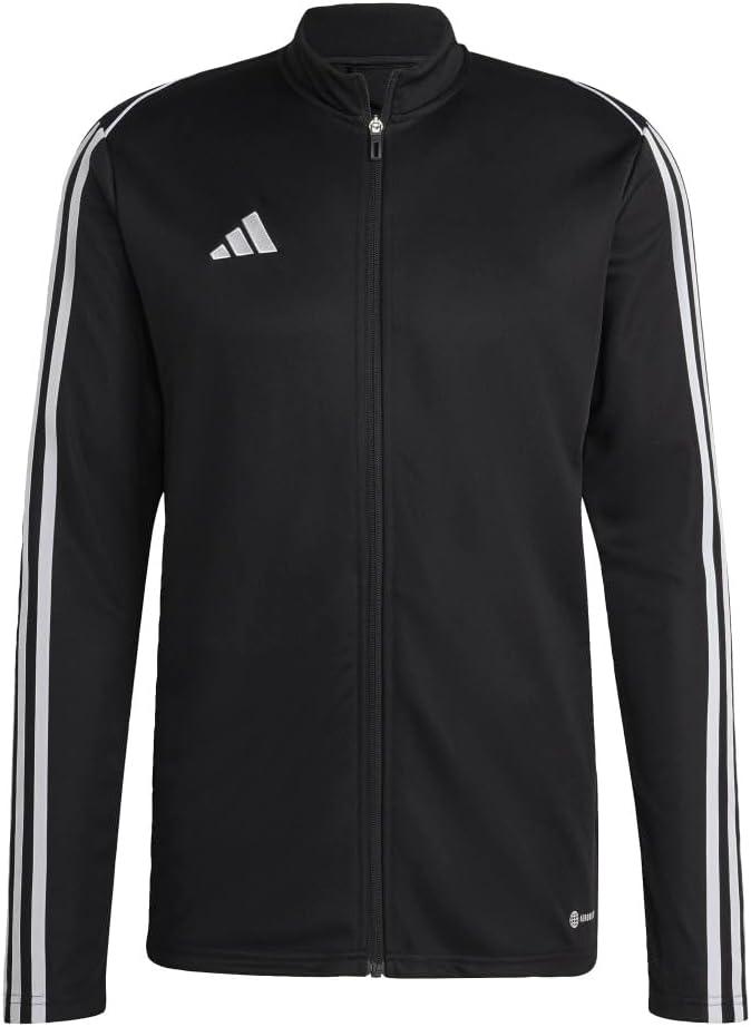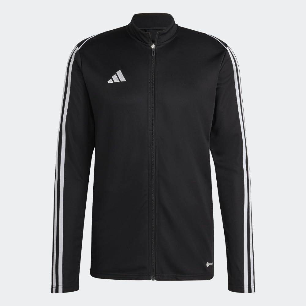 Soccer style for the stadium or the street. This men's adidas track jacket fits slim, so it won't get in your way. AEROREADY manages moisture when you heat up. Front pockets hold your wallet and phone and keep your hands warm.