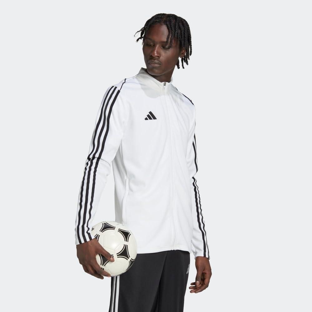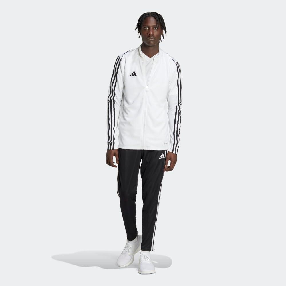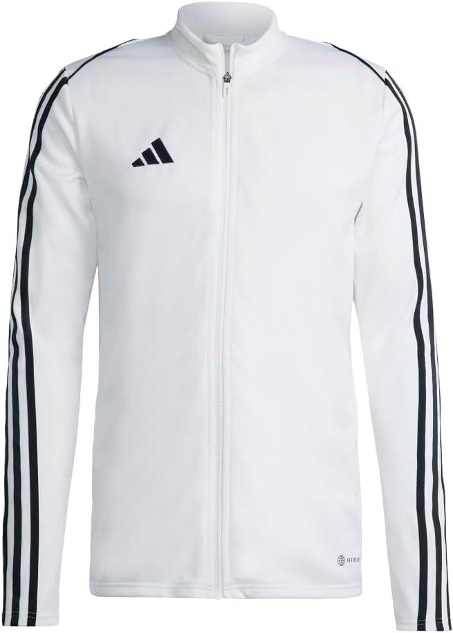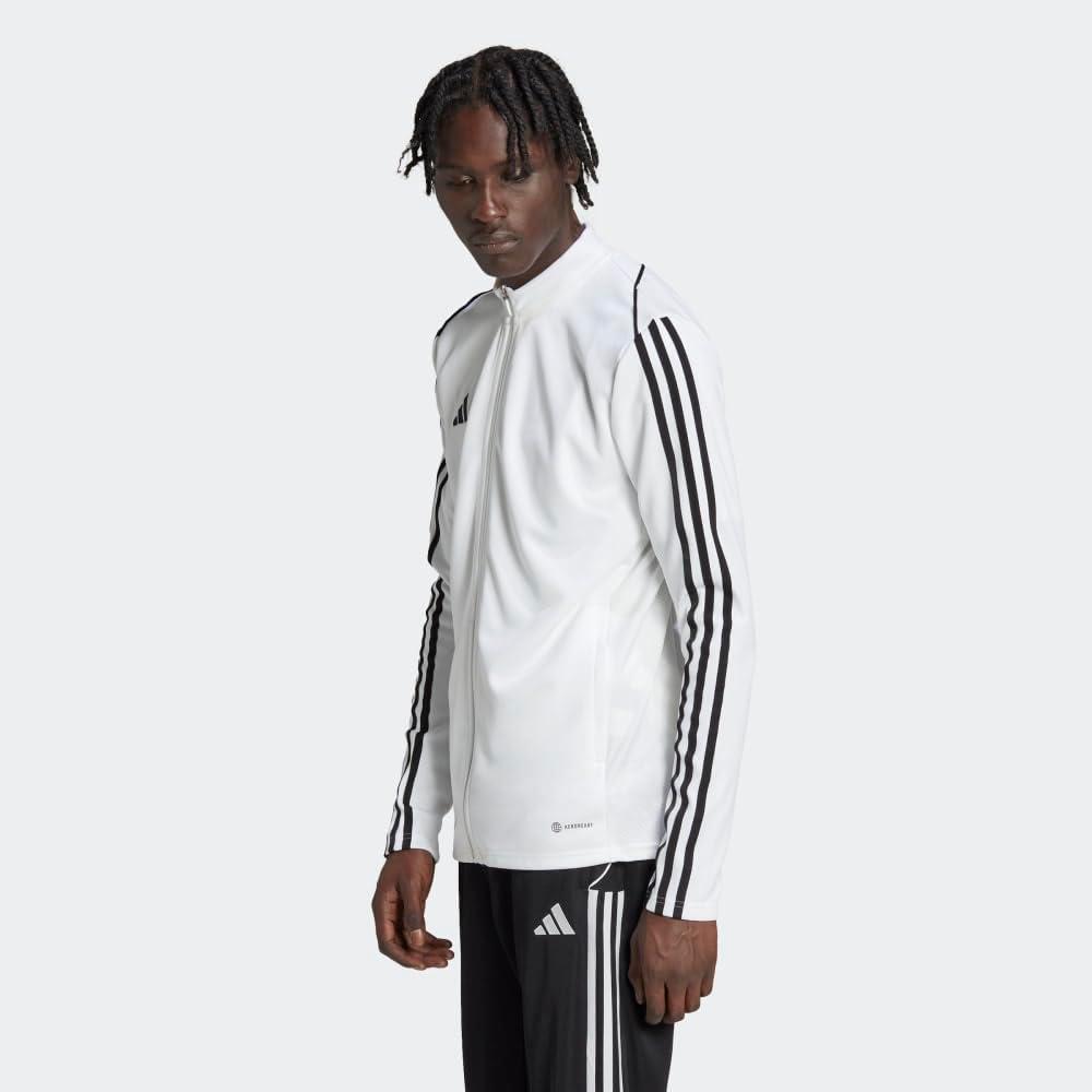 Soccer style for the stadium or the street. This men's adidas track jacket fits slim, so it won't get in your way. AEROREADY manages moisture when you heat up. Front pockets hold your wallet and phone and keep your hands warm.