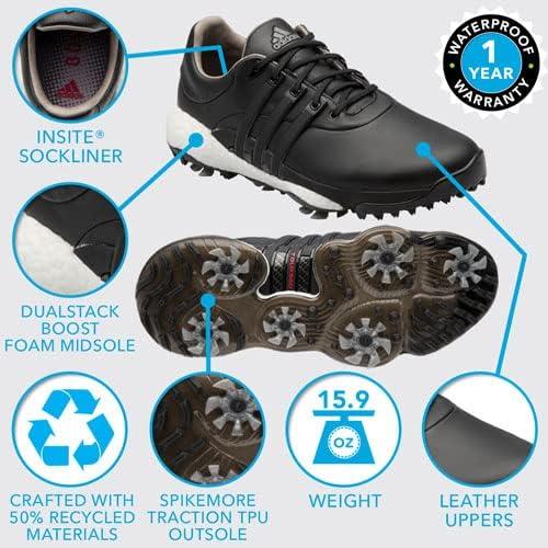 Made for endurance, performance and stability on the golf course. These men's adidas shoes are made with a DUALSTACK hybrid midsole featuring Boost for comfort, stability and performance. Direct-inject TPU spikes provide traction without tiring spike pressure. The Geofit collar and new FYW last wrap your feet for continual support.