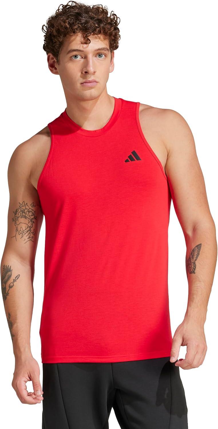 adidas Men’s Training Essentials Feel Ready Logo Sleeveless T-Shirt(Pure Ruby/Black)