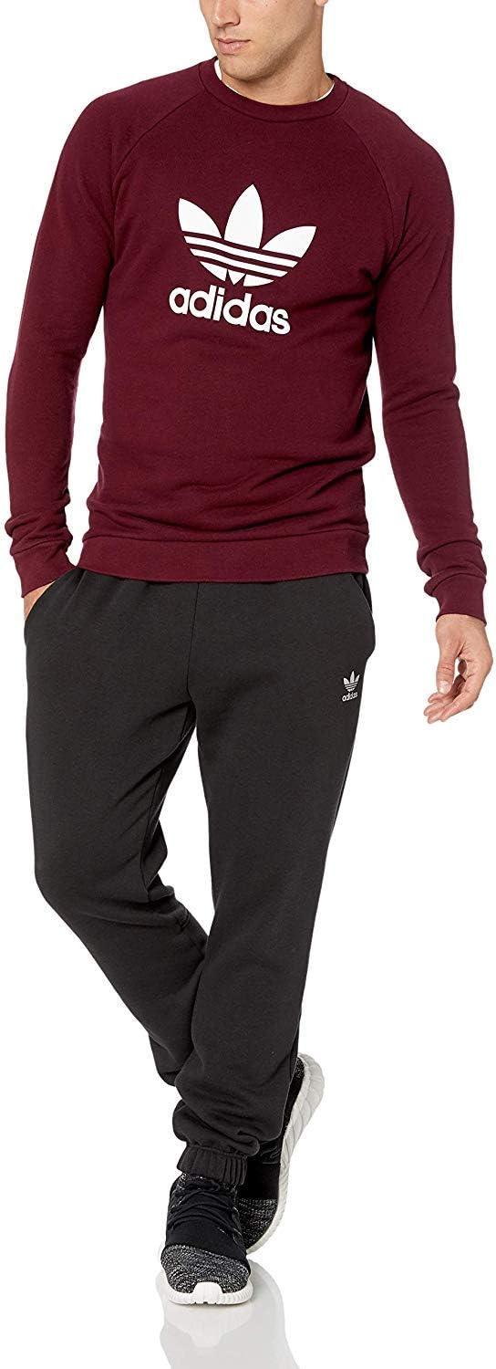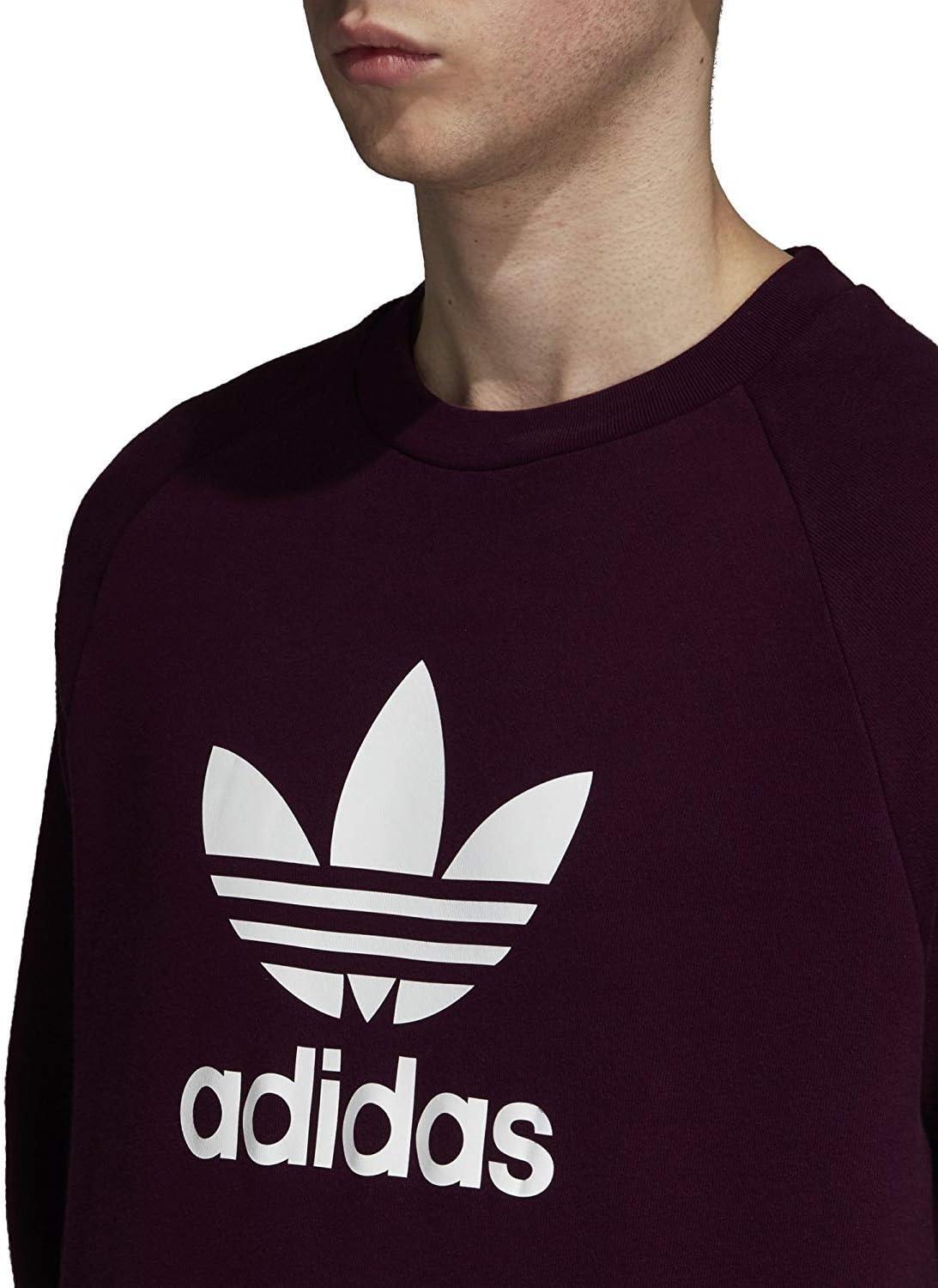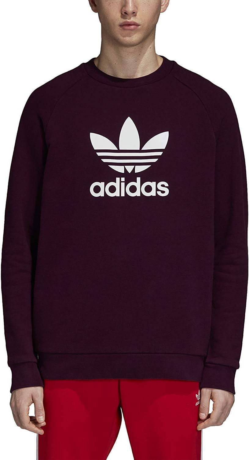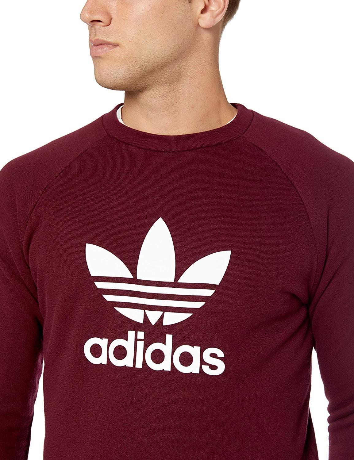 adidas Mens Trefoil Crew Neck Sweatshirt Casual – Black(Maroon)