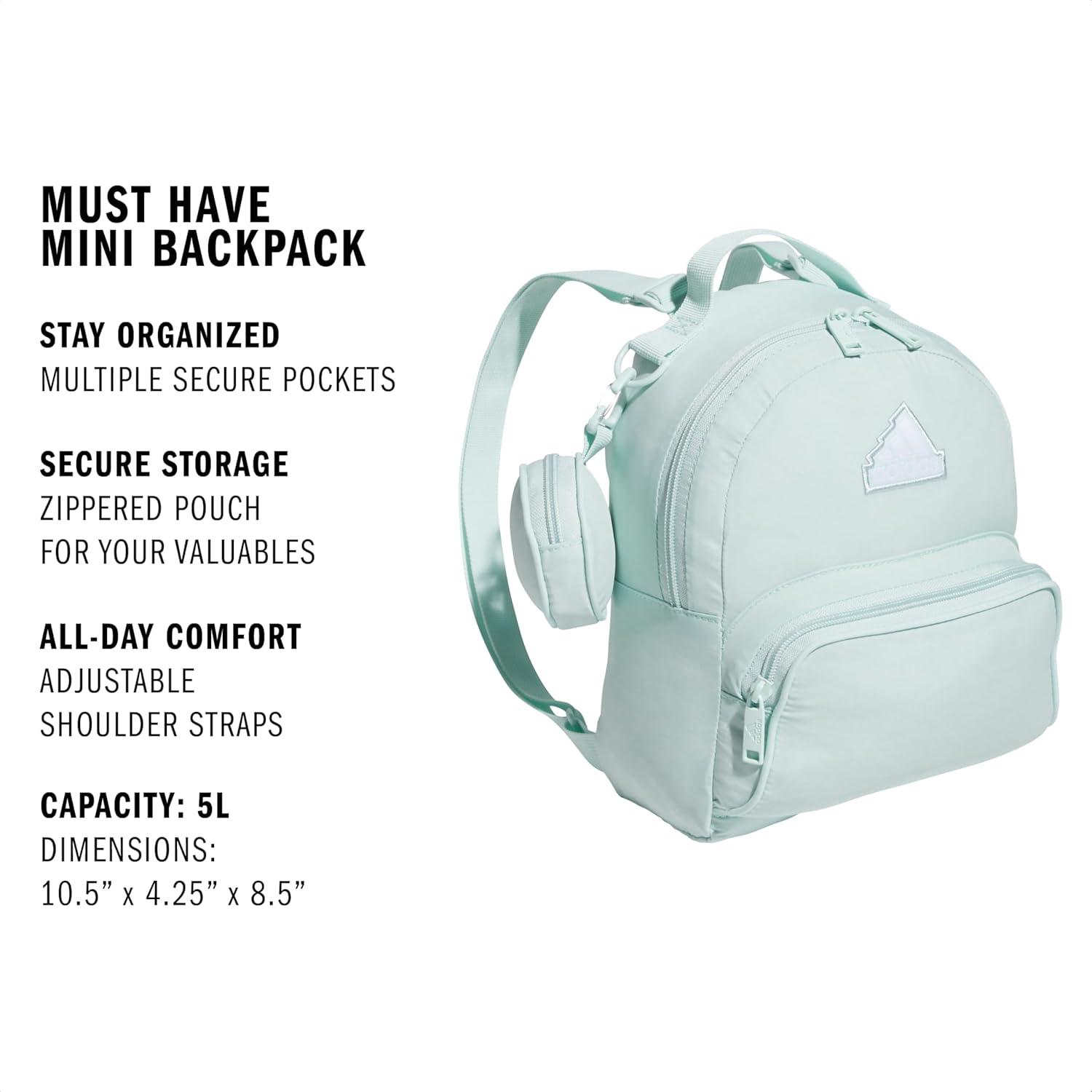 adidas Mini Backpack for Women – Small Bag for Travel, Gym, Festival & More, Black/White, One Size(Halo Mint Green)