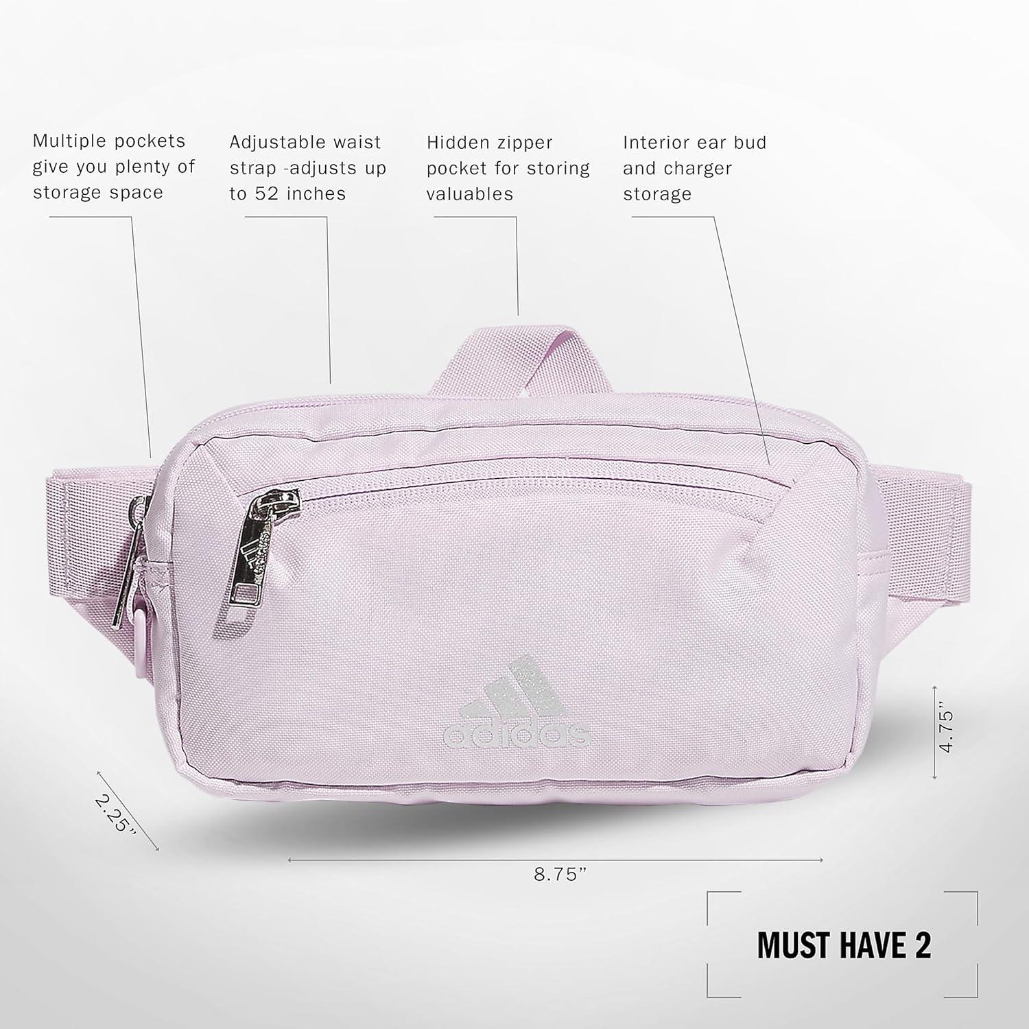 adidas Must Have 2.0 Belt Bag Crossbody Waist Pack with Adjustable Strap for Festivals and Travel(Ice Lavender/Silver Metallic)