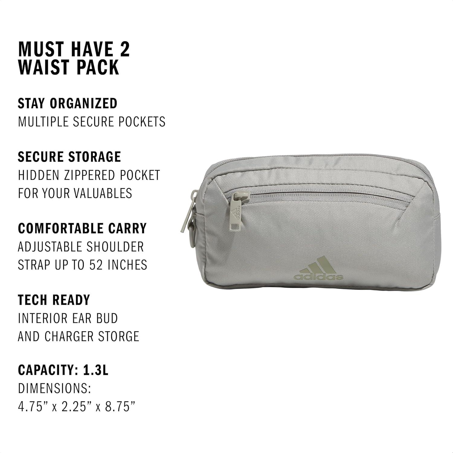adidas Must Have 2.0 Belt Bag Crossbody Waist Pack with Adjustable Strap for Festivals and Travel(Metal Grey/Feather Grey)