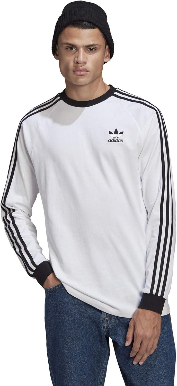 adidas Originals Men’s Adicolor Classics 3-Stripes Long Sleeve Tee(White)