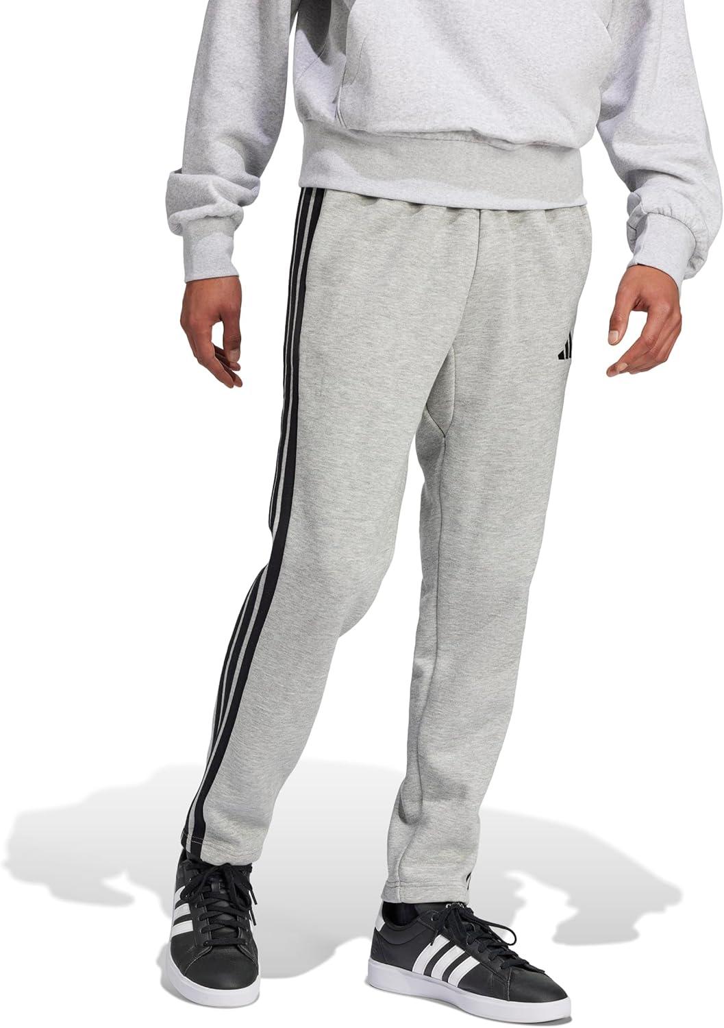 adidas Originals Men’s Essentials 3-Stripes Fleece Open Hem Pants(Medium Grey Heather/Black)