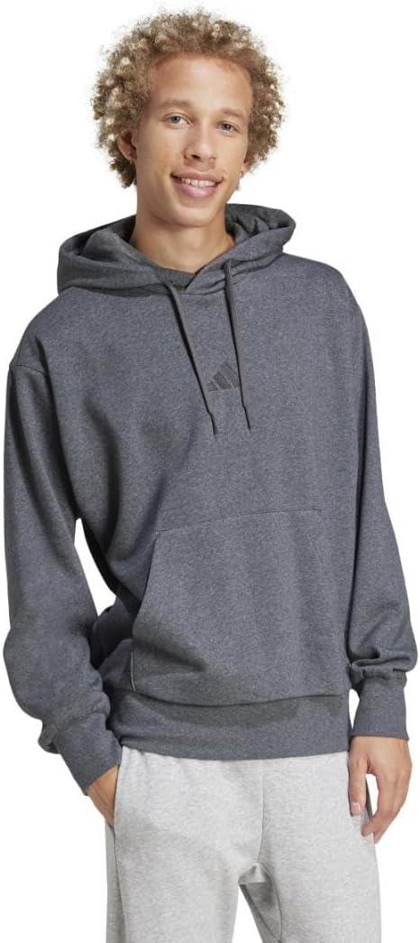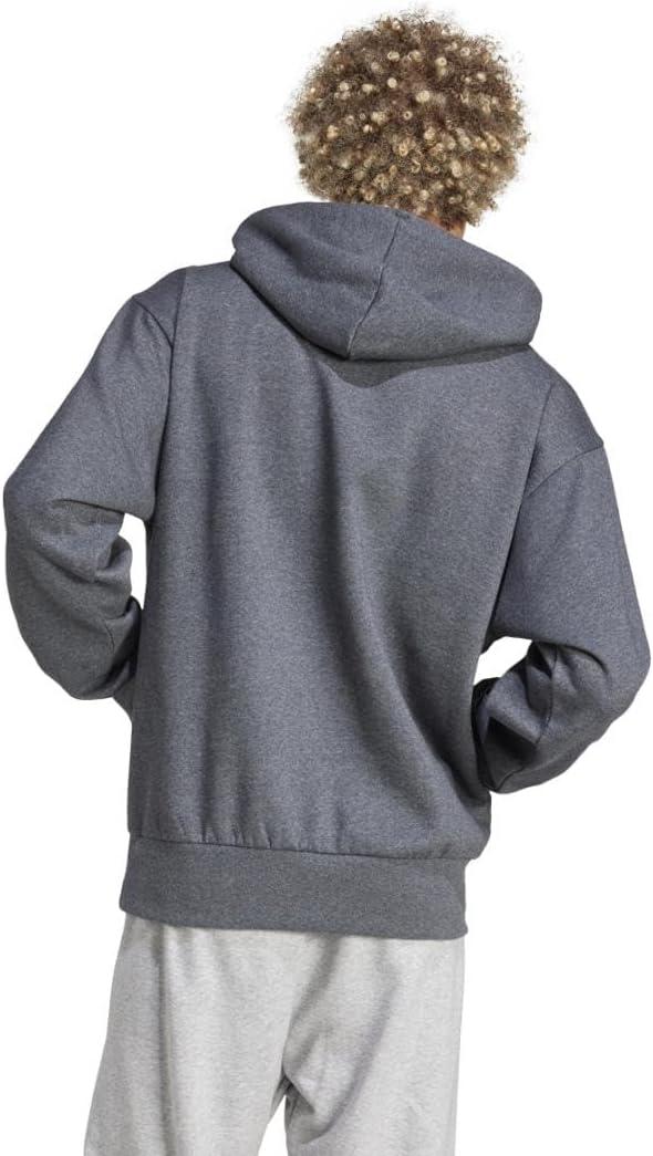 adidas Originals Men’s Essentials Feel Cozy Fleece Hoodie Sweatshirt(Dark Grey Heather/Black)