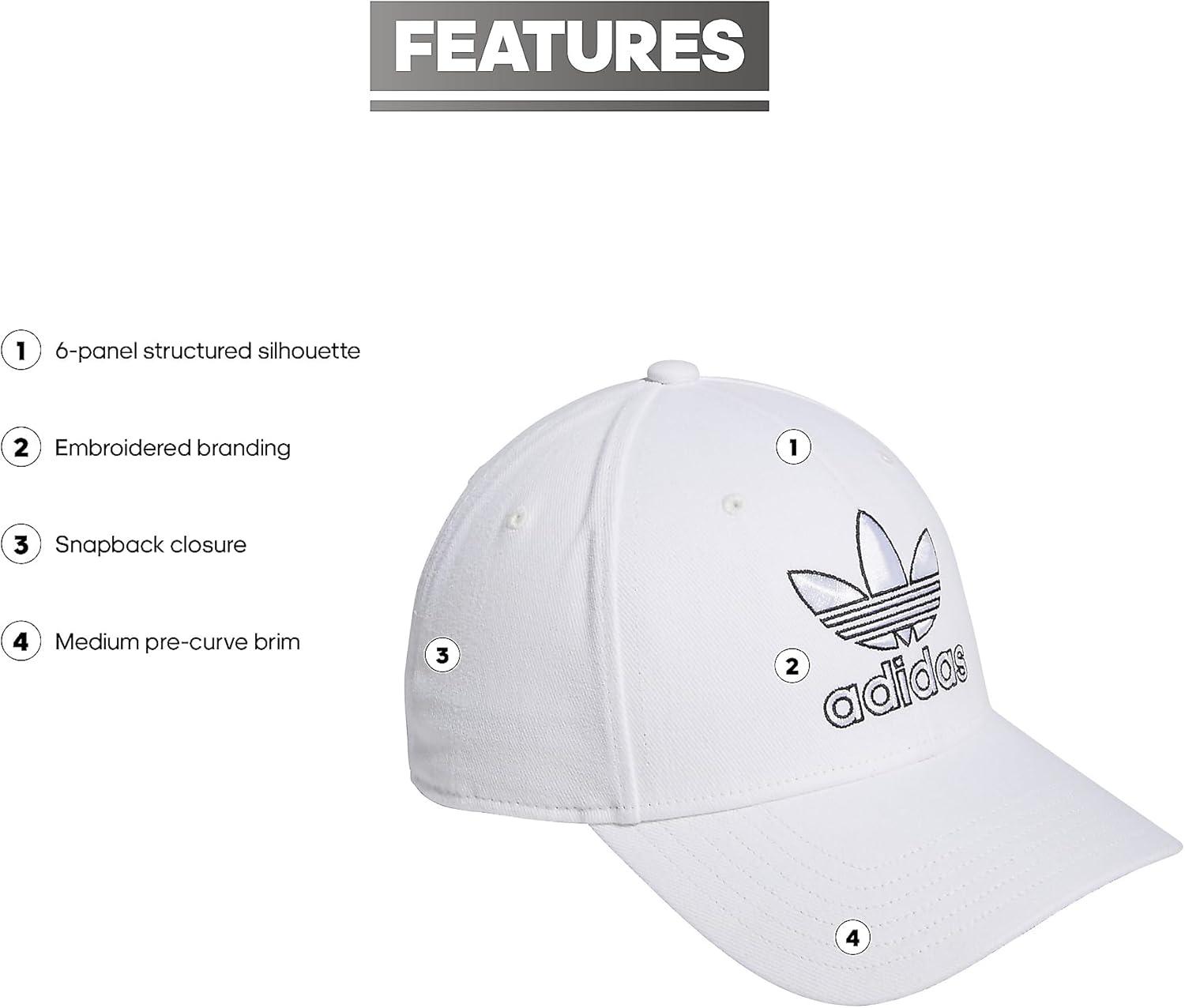 adidas Originals Men’s Icon 2.0 Structured Precurve Snapback Cap(White/Black)